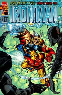 Iron Man #1, erschienen im Februar 2001 bei Panini Autor: Kurt Busiek (mit Hilfe von Roger Stern), Zeichner: Patrick Zircher, Sean Chen (mit Hilfe von Salvador Larocca & Terry Shoemaker) Tony Stark hat es wirklich nicht leicht. Nachdem zahlreiche Schurken versucht haben, ihn anzugreifen und zu töten, wird er trotz erheblicher Verletzungen immer wieder dazu gezwungen, seine Iron Man-Rüstung anzuziehen, um gegen seine Gegner anzutreten. Nun ist es plötzlich eine wohl neue Fassung der von ihm entworfenen War Machine, die ihm Ärger bereitet. Tony weiß noch nicht, daß hinter diesem Angriff die skrupellose Geschäftsfrau Sunset Bain steckt, die damit die volle Aufmerksamkeit von Tony Stark auf sich lenken will. Erschreckt sieht auch der ehemalige Träger der War Machine-Rüstung, Jim Rhodes, zu, was da geschieht. Von diesem Ereignis aufgeschreckt, begibt er sich auf die Suche nach Parnell. Tony muß noch eine weitere schreckliche Nachricht in Empfang nehmen. Nachdem Dr. Jane Foster und Henry Pym ihre Daten abgeglichen haben, kommen sie zu dem Ergebnis, daß es die elektrischen Strahlung der Iron Man-Rüstung ist, die seine Genesung verlangsamt und ihn sogar auf Dauer umbringen würde. Tony Stark ist das Opfer einer gehörigen Ladung Elektrosmogs geworden. Als nächstes besucht Tony dann für eine schnellere Heilung die Nobelklinik eines gewissen Xander Basel. Hier nimmt sich Tony auch Zeit, um seiner Rüstung die nötigen Daten zu entlocken, um eine bessere Isolierung der elektrischen Strahlung vorzunehmen und zu seiner Freude bekommt er Besuch von Rumiko. Trotzdem stehen bald weitere Kämpfe an und so muß sich Iron Man dem Controller stellen und auf dem Mond den Fantastischen Vier zur Hilfe eilen, denn dort sorgt Ronan, der Ankläger, für mächtigen Ärger (eine Geschichte, die in den Seiten von "Die fantastischen Vier #1" ihren Anfang nimmt und auch dort beendet wird.) Zum Ende dieser ersten Ausgabe hat Tony eine neue Rüstung zusammengebaut und er kann sich in dieser auch wieder ohne größere Sorgen einem Gegner namens Nitro widmen. Schon zu der Zeit, als "Iron Man" die Zweitgeschichte bei den "Rächern" stellte, fand ich seine Geschichten viel besser als die der "Supergruppe". Diese Meinung bleibt auch nach dieser Ausgabe bestehen, weil es Kurt Busiek hier einfach schafft, spannende und unterhaltsame Geschichten zu schreiben, die es dem Leser einfach machen, sich in der Welt von Iron Man zurechtzufinden, da er sie mit all den nötigen Informationen eindeckt, die man als Iron Man-Neuleser braucht, um seinen Spaß an diesen Geschichten zu haben, die sich auch immer wieder bei der langen Geschichte des Marveluniversums bedienen. Zur Zeit hat Kurt Busiek wohl das außerirdische Volk der Kree für sich entdeckt, die ja auch in seiner Serie "Rächer aller Zeiten" schon eine bedeutende Rolle spielen. Außerdem halten die zahlreichen Geschehnisse den Helden und den Leser auf Trab, so daß man einfach gerne die vier hier abgedruckten Geschichten konsumiert. Iron Man #2, erschienen im April 2001 bei Panini Autor: Roger Stern (mit Hilfe von Kurt Busiek), Zeichner: Patrick Zircher, Sean Chen, Anthonny Williams Erst macht ein Drache namens Fin Fang Foom, der von einem Rockmusiker Besitz ergreift, Tony zu schaffen. Danach läßt er sich von Sunset Bain als Codeknacker anwerben. Dabei stößt er auf ein Geheimnis und hat es gleich wieder als Iron Man mit dem von Sunset angeheuerten War Machine zu tun. Außerdem versuchen gleich mehrere Personen Tony zu einer Schatzsuche zu überreden, doch Tony lehnt dies dankend ab, da er ja so viel zu tun hat. Ehrlich gesagt langweilte mich die Lektüre dieser Ausgabe etwas. In den fünf in dieser Ausgabe abgedruckten US-Heften passiert ziemlich