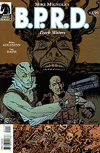 Mike Mignola's B.P.R.D. - Dark Waters, erschienen im Juli 2003 bei Dark Horse Comics Autor: Brian Augustyn, Zeichner: Guy Davis, Farben: Dave Steward, Letterer: Michelle Madsen, Editor: Scott Allie, Assistent Editor: Matt Dryer, Herausgeber: Mike Richardson Das Städtchen Shilo erlebt eine Veränderung. Das große Wasserloch, das immer mehr zu einem großen Schlammloch geworden ist, welches im Stadtkern liegt, wird entwässert und der Schlamm abgetragen. Zufrieden schauen der Bürgermeister und die Leiterin der Polizei bei dieser Aktion zu. Aber nur solange, bis die Körper dreier in Ketten gefangener Frauen freigelegt werden. Als Abe Sapien und Roger, die Mitarbeiter des Bureau for Paranormal Research and Defense die Stadt erreichen, werden sie von der Polizistin zu den Leichen gebracht. Angeblich sind sie mindestens dreihundert Jahre alt und sie verströmen Rosenduft. Schnell gehen die Mitarbeiter dem nach und fragen, ob es jemals einen Fall von Hexenaustreibung in dem Ort gegeben hat. Einer der Priester der Stadt, Reverend Lucas Shaw, klärt die Detektive über den einzigen bekannten Fall auf. Die Geschwister Trask wurden der Ausübung von Schwarzer Magie beschuldigt, da sie preisgekrönte Rosen züchteten, während alle anderen Bewohner bei ihren Versuchen nicht sehr erfolgreich waren. Sie wurden in das Schlammloch geworfen und sie versanken darin. Damit war zwar ihre Unschuld bewiesen, gleichzeitig sind sie aber auch gestorben. In der Stadt hatten sich die Bewohner schnell darauf geeinigt, den Fall so schnell es geht zu vergessen. Danach verlassen die Detektive zusammen mit der Polizisten das Polizeirevier, um beim Schlammloch weitere Nachforschungen anzustellen. Dies wird von Pastor Blackwood beobachtet. Dieser glaubt, daß durch die Entdeckung der Leichen und durch das Auftauchen der seltsamen Ermittler der Teufel wieder Einzug in seine Stadt erhält. Er betritt das Leichenschauhaus und wird überraschend von riesigen Schlammassen begraben, um danach mit den Leichen zu verschwinden. Nach und nach kommen die Ermittler nun dahinter, daß in dem Schlamm auch die manifestierten Sünden der Stadt vergraben liegen und daß der zornige Pastor versucht, die Leichen der Frauen noch einmal dem Wasser zu übergeben. Am Strand kommt es zu einem kurzen Zwischenfall, bei dem sich die Ermittler mit dem Pastor auseinandersetzen müssen, der nun den Schlamm kontrollieren kann, während Reverend Shaw versucht, die Leichen angemessen zu beerdigen. Es kommt, wie es kommen muß, die Leichen landen zusammen mit dem zornigen Pastor auf dem Grund des Meeres. Nette Geschichte, die zwar nichts wirklich Neues über die Ermittler der B.P.R.D. preisgibt, aber mit ihrer Geschichte zu unterhalten weiß. Für den stolzen Coverpreis von 2.99$ kann man aber eigentlich etwas mehr erwarten. |