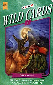 George R. R. Martin (Hrsg.): Wild Cards - Vier Asse. München: Heyne, 1996. 317 S. ISBN 3-453-10925-2 (nicht mehr lieferbar/aus dem Programm genommen) Ein einzelner Außerirdischer landet auf der Erde und verlangt die Führer und die klügsten Köpfe der Welt zu sprechen. Es gäbe da eine Gefahr, der man alle Aufmerksamkeit schenken sollte. Ansonsten könnte etwas sehr Schlimmes passieren. Der Außerirdische kommt von einer fremden Welt, dort suchte man nach neuen Waffen und so wurde ein gefährlicher Virus geschaffen. Doch da dieser Virus scheinbar eine unkontrollierbare Veränderung bei denjenigen verursachte, die mit ihm in Berührung kommen, zu der auch sehr oft das frühzeitige Ableben einer Person zu zählen wäre, sollte der Virus erst an einem Volk getestet werden, das dem der Takisier sehr ähnlich ist und so wurde er auf den Weg zur Erde gebracht. Dr. Tachyon, so wird der Außerirdische bald genannt, ist der Erschaffer dieses Virus und will ein Freisetzen verhindern. Leider schafft er dies nicht. Nachdem der Virus seinen Weg zur Erde und in die Hände einer zwielichtigen Gestalt gefunden hat, die schnell herausfindet, welches Potential in dem Virus steckt, wird der Virus in Folge einer kleinen Schlacht über New York am 15. September 1946 freigesetzt. Das Ergebnis ist verheerend. Menschen, die mit dem "Wild Card-Virus" in Kontakt kommen, werden von ihm verändert. Tachyon sollte recht behalten. Viele Tausende sterben sofort, während sich andere in abscheuliche Wesen verwandeln, diese werden schnell als "Joker" bezeichnet. Nur wenige haben so etwas, das man Glück nennen kann. Sie ziehen ein As. Sie erhalten eine Fähigkeit, die sie zu etwas Besonderen macht. Solche Asse werden bald von der Regierung gebraucht, um an Krisenherden in der ganzen Welt zu helfen. Vier Asse gehen in die Geschichte ein. Einer wird zum Verräter, während die anderen in der Zeit der Kommunistenjagd abtauchen müssen. Doch scheinbar am schlimmsten trifft es Tachyon, der eine Beziehung zu einem der Asse hat. Eine Beziehung, an der er zerbricht. Es gibt aber viele andere, die entweder As oder Joker sind, die alle eine Geschichte wert sind. "Wild Cards" funktioniert nicht nur als eine Zusammenstellung von mehreren Kurzgeschichten, die alle einen gemeinsamen Ausgangspunkt haben, sondern auch als Notlösung für Rollenspielfanatiker, die eben auch Autoren sind. Irgendwann bekam der Herausgeber und Mitautor dieser Geschichten ein Superhelden-Rollenspiel in seine Hände und er fing an wie ein Besessener sich Abenteuer und eine ganze Welt für seine Spieler auszudenken. Doch irgendwann vergaßen die Spieler, von denen die meisten auch Autoren waren, durch das Spielen zu schreiben. Also beschlossen sie ihre Abenteuer in geschriebene Geschichten zu packen. Außerdem wurden auch prominentere Genreautoren wie Roger Zelazny und Lewis Shiner dafür gewonnen, Geschichten in dieser Welt zu plazieren. Das Ergebnis ist ein für Superheldenfans sehr erfreuliches. Endlich hat das Superhelden-Genre den Sprung in die Literatur geschafft. Dabei ist "Wild Cards" auch noch sehr originell und viel besser als so manche Comicserie. |