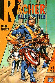 Link zur Ausgabe #2, #3, #4, #5, #6 Rächer aller Zeiten #1, erschienen 2000 bei Marvel Deutschland (Marvel Millennium) Autor: Kurt Busiek, Zeichner: Carlos Pacheco In einer fernen Zukunft wird die ganze Bevölkerung eines Planeten von den Rächern für ein Verbrechen bestraft, das nur von zwölf Wesen aus ihrem Volk begangen wurde. Die Rächer oder besser gesagt eine Rächer-Armee wird von Rick Jones angeführt. Die Gegenwart. Die Rächer bringen einen kranken Freund in eine Festung, die in der Blauen Region des Mondes liegt. Vor kurzem noch planten die Kree von hieraus einen Eroberungsfeldzug, nun wird hier von Mitgliedern der Organisation namens S.H.I.E.L.D. unter großen Aufwand ein einziger Gegner gefangengehalten. Es handelt sich dabei um die Oberste Intelligenz, einen mächtigen organischen Super-Computer, der einst über ein großes Imperium herrschte. Die Rächer befehlen der Obersten Intelligenz, sich um den kranken Rick Jones zu kümmern, da dieser unter einer Krankheit leidet, die große Ähnlichkeiten mit einer Kraft aufweist, die ihm einst durch den Super-Computer übertragen worden war. Nach einer kurzen Diskussion stimmt die Oberste Intelligenz zu, einen Versuch zu starten, um herauszufinden, was mit Rick Jones los ist. Als die Rächer weg sind, tritt plötzlich eine andere Gestalt zu dem Gefangenen, um das weitere Vorgehen zu besprechen. An einem Ort fern der Realität bemerkt ein Wächter der Zeit, daß es nötig geworden ist, daß er in den weiteren Verlauf der Gegenwart einschreitet. Er schickt einen seiner Handlanger los, um das Ende der Realität zu verhindern. Doch dabei will ein anderer nicht tatenlos zusehen und im weiteren Verlauf dieses Konfliktes werden alte und zukünftige Mitglieder der Rächer eine wichtige Rolle spielen. Genau solche Geschichten braucht es, um den Zauber zu entfachen, der nötig ist, damit die Leser einer Geschichte, in der allmächtige Helden gegen fast überirdische Wesen kämpfen, zufrieden sind. Da muß es um mehr gehen als um die Bekämpfung von Terroristen oder gemeinen Verbrecherorganisationen. Es muß etwas Außergewöhnliches und Übergroßes sein, daß den Helden zu schaffen macht. Da muß der Ablauf der Zeit angehalten werden und es muß nur in einer kleine Zeitblase möglich sein, einen Kampf auszufechten, in dem Armeen aus der gesamten Weltgeschichte gegen einen einzigen Krieger aus der Zukunft kämpfen. Ich glaube, es war in dem Film "Unbreakable", daß ein von Samuel L. Jackson gespielter Comicexperte die Geschichten der Superhelden mit denen der alten Sagen und Legenden verglichen hat. Genau solche neue Legenden haben wir damals von Stan Lee und Jack Kirby bekommen und nun erzählen Kurt Busiek und Carlos Pacheco uns eine genauso tolle Geschichte. Und das Schöne daran ist, daß man auch noch Platz gefunden hat, um auf die Personen hinter den Masken einzugehen. Also ist es doch noch möglich, gute Rächer-Geschichten zu erzählen. Rächer aller Zeiten #2, erschienen 2000 bei Marvel Deutschland (Marvel Millennium) Autor: Kurt Busiek, Zeichner: Carlos Pacheco Es gibt mächtige Kriegsherren, die es geschafft haben, die Brücke der Zeit zu überwinden. Einer dieser Zeitreisenden ist Kang, der Eroberer, der schon mehrmals gegen Helden wie die Fantastischen Vier und die Rächer gekämpft hat. Irgendwann wurde aus Kang Immortus, der Meister der Zeit und da es sich dabei um ein und dieselbe Person handelt, kann es sogar sein, daß sich Kang und Immortus, der ja in der Zeit herumreisen kann, treffen und sich sogar bekämpfen. Und in genau diesen Kampf sind nun Mitglieder der Rächer, die wiederum aus unterschiedlichen Zeitebenen stammen, hineingeraten. Da eindeutig Kang das kleinere Übel zu sein scheint, schlagen sich Wasp, Captain America, Hawkeye, Yellowjacket, Goliath, Captain Marvel, Songbird und der mysteriöse Libra auf dessen Seite, dabei müssen sie ein Ziel im Auge behalten. Sie müssen Rick Jones, der aus ungeklärten Gründen zum Spielball mächtiger Kontrahenten wurde, beschützen. Und so kommt es in der Festung Chronopolis zu einem gewaltigen Kampf, bei dem es Immortus auf das sogenannte "Herz der Ewigkeit" abgesehen hat. Die Geschichte wird erst in der zweiten Hälfte, nach dem Kampf wieder etwas erklärbarer, denn dann müssen sich die Rächer aufteilen, um den Schaden, den Immortus in verschiedenen Zeitebenen der Weltgeschichte anrichtet, wieder in Ordnung zu bringen. So achtet man vor allem in dieser Ausgabe auf die hervorragenden Zeichnungen von Carlos Pacheco, der all die doch teils konfusen Handlungsstränge glanzvoll und mit dem Können eines wirklich talentierten Zeichners zu Papier bringt. Rächer aller Zeiten #3, erschienen 2000 bei Marvel Deutschland (Marvel Millennium) Autor: Kurt Busiek, Zeichner: Carlos Pacheco Die Rächer haben sich aufgeteilt und Rick Jones betrachtet aus einer als Sphinx getarnten Zeitmaschine heraus, was die einzelnen Teams machen. Die einen hat es in eine Zukunft verschlagen, in der die Menschheit fast von den Marsianern ausgerottet wurde. Nur mit größter Härte gelingt es, die Eroberer zu vertreiben. Nun sinnt der Anführer des Widerstandes nach Rache. In der jüngeren Vergangenheit hat ein Skrull die Identität des Vizepräsidenten Nixon angenommen und die in dieser Zeit aktiven Rächer versuchen diesen auch noch zu beschützen. Noch weiter in der Vergangenheit scheint alles wieder in Ordnung gebracht worden zu sein. Zwar baut Kang dort an einer mächtigen Maschine, doch ist sich das dort angekommene Rächerteam sicher, daß alles nun von selbst in Ordnung kommen wird. Leider wird ihnen aber der Rückweg in die Sphinx schwergemacht, da Kang ihnen den Zugang versperrt hat. Außerdem stellen die einzelnen Teams fest, daß Immortus überall in den Zeitlinien Agenten versteckt hat und auch damit hat sich Immortus als Meister des Unmöglichen hervorgetan, da es von seinen Agenten eigentlich nur ein einziges Exemplar gibt, überall aber mehrere davon aktiv zu sein scheinen. Außerdem 