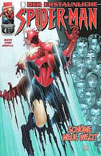2001 bei Marvel Deutschland Peter muß sich noch einmal mit der bösen Spider-Woman anlegen, die den ehemaligen Spider-Women ihre Kräfte geraubt hat. Nun erfährt Spider-Man auch, daß diese nicht allein handelt, sondern von jemand ganz anderen gesteuert wird. Die andere neue Spider-Woman kuriert ihre Verletzungen im Krankenhaus und wir stellen überrascht fest, daß Onkel und Tante von Mattie niemand anderes sind als Marla und J.J. Jameson. Als sich Onkel und Tante davon machen, bekommt Mattie Besuch von der durch die "Versammlung der Fünf" verjüngte Madame Web. M.J. wird indes weiterhin von geheimnisvollen Anrufen geplagt und Flash Thompson bekommt unerwarteten Besuch. In der zweiten Geschichte wenden wir uns wieder der Person des Senator Ward zu. Dieser hat eine gemeinsame Vergangenheit mit Arthur Stacy. Stacy sucht Peter auf und bittet ihn um die Hilfe von Spider-Man. Es würde sich um eine Sache handeln, in der er und der Senator verwickelt wären. Da aber zu dieser Zeit M.J. im Zimmer ist, kann ihm Peter nichts von seiner gern geleisteten Hilfe sagen. Außerdem schickt der Kingpin demjenigen, der ihn einst seiner Macht beraubt hat, den Killer mit Namen Bullseye auf dem Hals. Und ratet mal, auf wen es der Kingpin da abgesehen hat. Die einzige Spannung ergibt sich aus den Fragen, die sich der Leser nach der Lektüre dieser Ausgabe immer noch stellt. Was hat es mit der Vergangenheit von Senator Ward auf sich und was sind das für seltsame Anrufe, die Mary Jane so in Panik versetzen? Die ganze Spider-Woman-Storyline wird eigentlich erst in den Seiten der ersten Ausgaben der neuen "Spider-Woman" Serie beantwortet. Der erstaunliche Spider-Man #4, erschienen im April 2001 bei Marvel Deutschland Text & Bild: Howard Mackie, John Byrne, Übersetzung: Michael Strittmatter Die Welt ist nicht mehr die, die wir kennen. Sie hat sich verändert. Der größte Held, den man in New York kennt, ist niemand anderes als Flash Thompson. Mit Spider-Man zusammen schafft er es, jeden Verbrecher und Schurken aufzuhalten und dafür wird er von seinen zahlreichen Fans geliebt. Auch die Frauen stehen bei ihm Schlange. Seltsam nur, daß in dieser Welt Peter Parker im Rollstuhl sitzt und daß sein Onkel Ben noch lebt. Was ist hier los? Diese ganze Story um Flash-Superstar ist so unrealistisch und geradezu lächerlich, daß jeder Leser sofort weiß, daß er auf diese Geschichte gut hätte verzichten können. Leider haben die Autoren dann auch noch den falschen Supergegner ausgegraben (da dieser im selben Erscheinungsmonat in einer anderen Serie Selbstmord beging) und so mußten sie auf diese bescheidene Story noch öfters eingehen. Peter Parker: Spider-Man #4, erschienen im April 2001 bei Marvel Deutschland Text & Bild: Howard Mackie, John Romita jr., Übersetzung: Michael Strittmatter Ein neuer Typ räumt in der Unterwelt von New York ziemlich auf. So müssen sich die verbleibenden Gangstergrößen zusammentun, um diesen neuen Mitspieler möglichst schnell loszuwerden. Peter Parker wäre in dieser Geschichte gar nicht mit von der Partie, wenn er nicht mal wieder im falschen Augenblick am falschen Ort gewesen wäre. So aber versucht er zwei Mafiosis, die eine Kiste mit sich schleppen, zu helfen, die auf der Flucht vor einem Haufen Vampire sind. Irgendwann taucht dann auch noch der Vampirjäger mit Namen Blade auf und dann wird die Sache erst richtig kompliziert. Außerdem ist jetzt Mary Jane mal wieder auf Peter sauer, da er durch sein Einmischen sein Flugzeug verpaßt hat, mit dem die beiden in den wohlverdienten Urlaub fliegen wollten. M.J. ist aber ohne ihn los und wohl ziemlich sauer. Als Peter auch noch erfahren muß, daß Eddie Brock aus dem Gefängnis geflohen ist, scheint die Welt für ihn kein sicherer Ort mehr zu sein. So liebe ich Spider-Man-Geschichten. Vampire und Gangster, das sind zwei Dinge, die kaum ein anderer so gut aufs Papier bringen kann wie John Romita jr. Solche Geschichten liegen diesem Zeichner einfach und Autor Howard Mackie befindet sich damit auch auf für ihn sicheren Terrain. So kann man als Leser einfach nur glücklich sein und der Dinge harren, die da noch kommen. Daß aber hinter all dem jetzt immer irgendwie dieser Senator Ward stecken soll, finde ich schon etwas übertrieben. Sicherlich hat dieser auch dabei geholfen, daß Eddie Brock aus dem Gefängnis türmen konnte. Der erstaunliche Spider-Man #5, erschienen im Mai 2001 bei Marvel Deutschland Text & Bild: Howard Mackie, John Byrne, Übersetzung: Michael Strittmatter Jonathan Rickman ist ein Mann, der ein Rätsel gelöst hat. Doch es scheint, als habe er dieses Rätsel etwas zu spät gelöst. Nun ist derjenige, der dafür verantwortlich ist, daß bestimmte Leute sterben, bei ihm. Spider-Man rettet ein Kind aus einem Großbrand. Dann muß er feststellen, daß noch einer auf dem Dach des in Flammen stehenden Gebäudes steht. Es ist Jonathan Rickman. Auch Rickman, der seltsames Zeug redet, wird von Spider-Man gerettet. Als Rickman in einem Krankenwagen vom Brandort weggebracht wird, entdeckt Peter das Notizbuch von Rickman. Er findet auch die Liste und er findet in dieser seinen Namen. Dies verwirrt ihn. All dies wird Peter zu einem Zeitpunkt in seinem Leben zurückführen, als er dem Experiment eines gewissen Doktor Otto Octavius beiwohnte. Währenddessen ist Mary Jane auf einer von einem Sturm heimgesuchten Insel dahinter gekommen, daß es am besten wäre, wenn sie sich mit Peter aussprechen würde. Sie beschließt, mit der nächsten Maschine zurück nach New York zu fliegen. Doch bevor sie in den nächsten Flieger steigen kann, erhält sie einen weiteren Drohanruf. In einem weiteren Nebenplot erfahren wir, daß sich Jill Stacy Sorgen um ihren Vater macht. Sie glaubt, daß Senator Ward ihm gefährlich werden könnte. Auch wenn der Hauptplot sich im nachhinein als ziemlich simpel erweist, erhält diese Ausgabe durch die zahlreichen Nebenhandlungen an Spannung dazu. Aber bitte, liebe Spider-Man-Macher ändert schnell wieder di