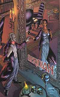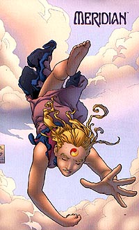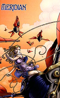 Link zur Ausgabe #2, #3, #4, #5, #6, #7, #8 Meridan #1, erschienen im Juli 2002 bei CrossGen Comics Deutschland Autorin: Barbara Kesel, Zeichner: Joshua Middleton Wieder betreten wir eine fremde Welt. Diesmal werden aber zwei Personen vom Erschaffer dieses Universums mit einem Zeichen versehen, damit das Gleichgewicht dieser Welt nicht gestört wird. Die Bevölkerung dieser Welt lebt verstreut auf fliegenden Kontinenten, die verschiedene Rohstoffe und Materialien bieten. Meridan ist eine Welt der Handwerker, die von ihrem Minister Turos weise angeführt wird. Turos Bruder Ilahn ist zum Minister von Cadador aufgestiegen, dessen Stadtstaat sich zum reichen Handelszentrum gemausert hat. Ilahn ist zu Besuch gekommen und erst bekommt er von seinem Bruder stolz gezeigt, was aus Turos Tochter Sephie geworden ist. Die Thronfolgerin ist zu einer jungen, schönen Frau herangewachsen. Als sich Turos und Ilahn zu einer privaten Unterredung zurückziehen, in deren Verlauf Turos die Vereinigung zwischen Meridan und Cadador erneut und diesmal endgültig ablehnt, passiert etwas Außergewöhnliches. Ein Vogel aus Licht fliegt auf die beiden Männer zu und verändert diese. Doch Turos, der von einer geheimnisvollen Krankheit geschwächt ist, kann dieser Transformation nicht standhalten. Kraftlos sinkt er zu Boden. Nun stürzt seine Tochter herbei und wieder geschieht etwas Seltsames. "Meridan" ist eine schön gezeichnete Serie. Das neu entdeckte Talent Joshua Middleton wird sicherlich mit dieser Arbeit für Aufsehen sorgen und er reiht sich mit seinem einfach wirkenden Zeichenstil wunderbar in die Reihe der anderen CrossGen-Zeichner ein. Außerdem ist man nach der Lektüre schon gespannt, wie die Geschichte wohl weitergeht. Meridan #2, erschienen im August 2002 bei CrossGen Comics Deutschland Autorin: Barbara Kesel, Zeichner: Joshua Middleton Ilahn nutzt den Tod des Ministers von Meridan aus, um Meridan von seinen Truppen besetzen zu lassen. Doch die Besatzer müssen feststellen, daß sich einige der Bewohner ihrem Zugriff verweigern und auf mysteriöse Weise einfach verschwinden. Sephie wurde von Ilahn in dessen Heimat Cadador gebracht und er sagt ihr, daß er sie in die Kunst des Regierens einweisen will. Doch in Wirklichkeit will er nur hinter das Geheimnis der seltsamen Kraft kommen, die durch das seltsame Zeichen auf Sephie und ihn übergegangen ist. Da kommt ihm eine alte Frau gerade recht, die mehr über diese seltsame Macht zu wissen scheint. Ach, diese Geschichte entwickelt sich geradezu unerträglich langsam. Gut, daß ab Ausgabe #7 nun endlich drei US-Ausgaben in einer deutschen Ausgabe abgedruckt werden. Auch daß man dann noch mehr von der Zeichenkunst des wirklich herausragenden Joshua Middleton hat, finde ich einfach toll. Meridan #3, erschienen im September 2002 bei CrossGen Comics Deutschland Autorin: Barbara Kesel, Zeichner: Joshua Middleton Sephie erkennt in der gnadenlosen Art, in der Ilahn mit seinen Geschäftspartnern der anderen Städte umgeht, daß sie nichts in Cadador verloren hat. Als sie dann auch noch von der Muse von Giatan gesagt bekommt, daß ihr Onkel ein Bild ihrer Mutter ständig bei sich trägt und sie ihren Onkel damit konfrontiert, weiß Sephie, daß sie so schnell wie möglich Cadador verlassen muß. In ihrer Heimat Meridan versuchen sich die Ratsmitglieder und Minister vor der Eroberungsarmee Cadadors in Sicherheit zu bringen. Während der tapfere Jad noch immer nach der verschwundenen Sephie sucht, unterschätzt ein Minister die Kampfkraft seiner Gegner. "Meridan" gefällt mir immer besser. Nur daß Sephie am Ende innerhalb einer Comicseite die Flucht aus dem Machtbereich ihres Onkels gelingt, finde ich relativ schwach. Meridan #4, erschienen im Oktober 2002 bei CrossGen Comics Deutschland Autorin: Barbara Kesel, Zeichner: Joshua Middleton Während Sephie die beschwerliche Heimreise nach Meridan angetreten hat und sie bald dabei feststellt, daß Soldaten ihres Onkels Ilahn versuchen, diese Flucht zu beenden, zeigt sich in Sephies Heimat, wie gut die dortigen Bewohner es immer wieder schaffen, ihre Gegner auszumanövrieren. So wird Ratsmitglied Jon Takarty zwar gefangengenommen, doch gelingt ihm mit Hilfe des Tunnelbauers Arn sofort auch wieder die Flucht aus dem Gefängnis. Außerdem zeigt sich auch, daß die Soldaten Cadadors den Widerstand kaum ernsthaft gefährden können, gerade dann, wenn sich vermeintliche Verräter und ins Exil gegangene Personen, deren Heimatgefühle doch stärker sind als die Pflichten, die man als Soldat der okkupierenden Besatzermacht hat, sich im rechten Moment für ihre wahre Heimat einsetzen. So wird dann auch eine Person namens Brehn in die Handlung neu eingeführt. Währenddessen erreicht eine geheimnisvolle Frau Cadador, die große Pläne zu haben scheint. Ist es vielleicht die von der Muse erwähnte Frau, die Sephies Platz einnehmen wird? In dieser Ausgabe werden neue Personen eingeführt und damit vergrößern sich wohl auch die Möglichkeiten für neue Wendungen innerhalb dieser Geschichte. Es sollte auch so langsam mal wieder etwas mehr Spannung eingebaut werden, da die guten Kräfte dieser Geschichte es zur Zeit etwas zu einfach haben, sich gegen ihre Gegner durchzusetzen. Meridan #5, erschienen im November 2002 bei CrossGen Comics Deutschland Autorin: Barbara Kesel, Zeichner: Joshua Middleton Sephie stürzt in die Tiefe. In ihrer Heimat treffen die Mitglieder des Widerstandes alle Vorbereitungen, um ihre Heimat zu verlassen. Sie müssen ihre Heimat für kurze Zeit aufgeben, um sich Verbündete im Kampf gegen Cadador zu suchen. Nur einer geht einen anderen Weg. Jad wird direkt in das Herz des Reiches seines Feindes eindringen, da er hofft, Sephie aus Ilahns Klauen zu befreien. IIahn nimmt währenddessen die Nachricht über Sephies Tod entgegen und er ist alles anderes als glücklich über diese Entwicklung. Eine Frau, deren Ziele noch unbekannt sind, bemüht sich um einen Termin, um mit dem Minister reden zu dürfen. Barbara K