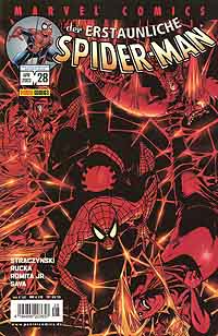 Der erstaunliche Spider-Man #18, erschienen im Juni 2002 bei Panini (Marvel Deutschland) Autor: J. Michael Straczynski, Zeichner: John Romita Jr. Peter Parker hat es nicht leicht. Zum einen lastet die Verantwortung, ein Superheld zu sein, ziemlich auf ihm. Zum anderen hat er auch privat schwere Zeiten hinter sich. All den damit verbundenen Frust läßt unser Held an einem zerfallenden Gebäude aus. Doch nun stehen die Chancen nicht schlecht für einen Neuanfang. Auch wenn dieser Peter durchaus mit seiner Vergangenheit konfrontiert. Als Peter durch seine alte Gegend streift und auch seiner alten High School einen Besuch abstattet, trifft er auf eine jüngere Version von ihm, einen schwachen Bücherwurm, der von seinen Mitschülern gepiesackt und gequält wird. Doch dann hat er als Spider-Man noch eine viel bedeutendere Begegnung. Er trifft auf einen Mann in mittleren Jahren, der die gleichen Kräfte zu haben scheint wie Peter. Ezekiel, der auch Peters wahre Identität zu kennen scheint, stellt mit ein paar Fragen Peters gesamte Heldengeschichte in Frage. Und wenn Peter wüßte, was für eine unliebsame Person es außerdem auf ihn abgesehen hat, würde er sich wohl schon jetzt zu Tode fürchten. Da gibt es jemanden, der es auf die Kräfte von Superhelden abgesehen hat. Und da Morlin die Kräfte eines unbekannten deutschen (!) Superhelden aufgebraucht hat, gelüstet es ihn nun nach Spider-Man. Na, das ist ja fast besser als man es zu hoffen wagte und ich habe von Stracz (so lautet angeblich der Rufname von J.M. Straczynski), dem Schöpfer von Babylon 5 und Rising Stars ja so einiges erwartet. Und ich war so neugierig auf seinen Spider-Man-Einstand, daß ich den Sprung direkt zu dieser ganz aktuellen Ausgabe gewagt habe (aber keine Angst, die nun entstandene Lücke, werde ich auch noch schließen ). Und dieser Schritt hat sich durchaus gelohnt. Endlich redet Peter wieder viel lustiges, teils auch sehr selbstironisches Zeug daher und außerdem gibt es endlich mal wieder neue Charaktere. Außerdem scheinen wir uns endlich von all den Klonen, Kobolden, Ehefrauen und sonstigen alten Gegnern befreit zu haben. Gut, ein paar Altlasten wie Tante May (die wenigstens wieder eine weniger schreckliche Frisur trägt) wird man einfach nicht los und ich hoffe, daß der Daily Bugle auch noch weiterhin eine feste Rolle haben wird, doch irgendwie scheint mir ein Autor, der bisher nichts für Marvel geschrieben hat und der trotzdem über diese natürliche Gabe des Erzählen verfügt, genau der richtige Mann zur richtigen Zeit zu sein (irgendwie war leider John Byrne nicht der richtige Mann für diesen Job). Schön ist es aber trotzdem auch, daß John Romita jr. immer noch diese Abenteuer zeichnet, dessen Bilder nun aber farblich so aufgepeppt werden, daß sie ein wenig von ihrem eigentlichen Charme einbüßen, dafür aber total cool und hip wirken (genau wie die von J. Scott Campbell gezeichneten Cover). Nach vierzig Jahren darf der Leser endlich feststellen, daß Peter tatsächlich älter und reifer geworden ist, daß er aber immer noch ganz neu wirkende Abenteuer erleben darf. Der erstaunliche Spider-Man #19, erschienen im Juli 2002 bei Panini Autor: J. Michael Straczynski, Zeichner: John Romita Jr. Als Spider-Man hält Peter einen fiesen Geiselnehmer davon ab, seiner Geisel etwas anzutun. Danach erlebt er nach seinem ersten Tag als Lehrer eine Überraschung. Im Büro des Schuldirektors wartet nämlich niemand anders als Ezekiel auf Peter. Ezekiel hat der Schule eine kleine, aber feine Geldspende zu kommen lassen und nun zeigt er Peter nach einem interessanten Pizzaessen, wozu Ezekiel seine Spinnen-Fähigkeiten genutzt hat. Ezekiel ist ein erfolgreicher Großunternehmer und er bietet Peter etwas ganz Besonderes an. Es ist ein Versteck, das Peter vor den Angriffen eines mächtigen und unbesiegbaren Gegner namens Morlun schützen soll. Warum dieser Jagd auf Peter macht, dies hat ihm Ezekiel auch erklärt. Doch Peter, der vor keinem Gegner davon läuft, lehnt das Angebot ab. Als er kurz darauf auf Morlun trifft, wünscht er sich bald, daß er sich anders entschieden hätte. In den Unterhaltungen zwischen Ezekiel und Peter gibt es noch weiteres über die Fähigkeiten von Peter und über andere Dinge zu erfahren, doch ich wollte natürlich nicht hier alles ausplaudern. Und als es dann zum Kampf zwischen Peter und Morlun kommt, geht so richtig die Post ab. Superheldencomics können ja so gut sein. Der erstaunliche Spider-Man #20, erschienen im August 2002 bei Panini Autor: J. Michael Straczynski, Zeichner: John Romita Jr. (1.Geschichte) Autor: Greg Rucka, Zeichner: Eduardo Risso (2.Geschichte) Ezekiel kann, nachdem Morlun Peter berührt hat, nicht helfen. Er sieht keine Chance in einer Auseinandersetzung mit Morlun. Peter muß sich also wieder Morlun stellen, da dieser einfach alles tut, damit Peter sich ihm entgegenstellt. Dabei weiß Peter, daß er früher oder später aufgeben muß. Doch solange er sich ihm entgegenstellen kann, solange will er das auch tun. Gegen Morlun zu gewinnen scheint unmöglich. Morlun ist einfach eine Nummer zu stark und da Peter keinerlei Schützenhilfe von einem seiner Superheldenkollegen bekommt und das, obwohl der Kampf große Spuren der Verwüstung im Stadtbild von Manhatten hinterläßt. Erst in der nächsten Ausgabe erfahren wir, wie der Kampf zu Ende geht. In der zweiten Geschichte lernen wir einen Handlanger des Kingpin kennen, der seinen letzen Gang antreten muß. Eine von dem Handlanger geleitete Operation ist durch Spider-Man gestört worden und dies bedeutet für die Untergebenen des Kingpin, daß ihr Versagen mit dem Tode bestraft wird. Und es scheint so, als wolle sich Tom Cochrane seinem Schicksal stellen, schließlich hat er eine Familie, für die er sorgen muß. Eduardo Risso ist eines der größten Zeichnertalente, der es mit seiner bei Vertigo erschienen Serie "100 Bullets" geschafft hat, eine große Anzahl von Bewunderern auf sich aufmerksam zu machen. Auf den erste
