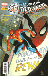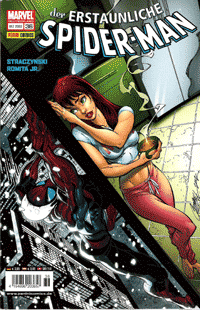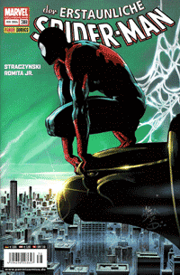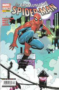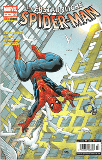 Die nächsten Ausgaben: #18, #32, #33, #34, #35, #36 & #37, #38, #39, #40 Der erstaunliche Spider-Man #31, erschienen im Juli 2003 bei Panini Autoren: J. Michael Straczynski, Greg Rucka, Zeichner: John Romita Jr., Scott Christian Sava Peter muss sich nach seiner Auseinandersetzung mit dem neuen und alten Doc Oktopus in einer großen Rettungsaktion aus den Trümmern eines Hotels retten, um eine Geiselnahme, von der auch Tante May und Mary Jane betroffen sind, zu verhindern. Gut gezeichnete Bilder und eine sehr rührende Aussprache beenden diesen Dreiteiler. Der Leiter der Firma Monnano möchte immer noch, dass die Killerin namens Yith Dr. Curt Conners umbringt. Leider kommt ihr dabei schon wieder Spider-Man in die Quere. Als Curt Conners von den behandelnden Arzt seiner Frau von deren Tod erfährt, will er sich endgültig an seinen Wiedersachen rächen. Und eine Killerin zeigt am Ende, dass auch sie ein Herz hat. Computergrafiken haben im Comic bitte noch nichts zu suchen. Sie können hilfreich bei der Hintergrundgestaltung und bei technischen Designs sein (siehe Mangas wie "Ghost in the Shell 2") doch bei dieser Miniserie wirkt das Computerspieledesign einfach nervig. Der erstaunliche Spider-Man #32, erschienen im August 2003 bei Panini Autoren: J. Michael Straczynski, Zeb Wells, Zeichner: John Romita Jr., Jim Mahfood Peter ist aus L.A. zurück und kann nicht schlafen. Dr. Strange versetzt ihm aber dann doch ins Reich der Träume, um ihm dort auf eine Gefahr hinzuweisen. Peter hat bei seinem letzten Besuch im Astralraum für kurze Zeit den Weg verlassen, den er nicht hätte verlassen sollen. Damit hat er einen natürlichen Feind der Spinne auf sich aufmerksam gemacht, der nun jederzeit zuschlagen kann, um Peter zu töten, um in seinem Leib Nachkommen aufzuziehen. Tage später taucht die mysteriöse menschliche Killerwespe namens Shathra auf, die mit ihm spielen will. Ein tödliches "Wespe jagt Spinne-Spiel" beginnt. Spannend beginnt dieses neue Kapitel schon. Aber etwas arg einfach wirkt die Herangehensweise an den weiteren Ausbau von Peters Spinnenpersönlichkeit und der doch arg simpel gehaltenen neuen Gegnerin. Doch diese scheint wandlungsfähiger als gedacht. Mal abwarten. In dem zweiten in dieser Ausgabe abgedruckten US-Comic bekommen wir einen im Stile der punkiger Independentcomics gezeichneten Ausflug von Spider-Man ins Reich der Musik-TV-Sender zu sehen. Bei der Aufzeichnung einer Musiksendung verschwinden einige Stars im Sand. Wer kann dafür wohl verantwortlich sein. Kommentar: Albern. Zum Glück bekommen wir nach zwei weiteren Ausgaben von "Der erstaunliche Spider-Man" endlich keine dummen Zweitstorys mehr zu sehen, sondern die doppelte Ladung von Straczynski/Romita jr. Der erstaunliche Spider-Man #33, erschienen im September 2003 bei Panini Autoren: J. Michael Straczynski, Zeb Wells, Zeichner: John Romita Jr., Jim Mahfood Shathra geht umgewandelt als normale Frau zum nächt besten Fernsehsender und erzählt, dass sie die Freundin von Spider-Man ist. Fröhlich plaudert sie über ihre extreme Beziehung mit dem Superhelden. Was sie damit bezweckt, geht auf. Wutentbrannt stellt sich ihr Spider-Man und es kommt zu einer heftigen Auseinandersetzung. Mal abwarten wie das endet. Das Fun-Abenteuer von Zeb Wells und Jim Mahfood endet mit einem Kampf des superstarfressenden Sandman und unserem Netzschwinger. Ein völlig unbedeutendes Comic. Der erstaunliche Spider-Man #34 erschienen im Oktober 2003 bei Panini Autoren: J. Michael Straczynski, Zeb Wells, Zeichner: John Romita Jr., Dean Haspiel Nach dem Kampf gegen Shathra wird Peter von Ezekiel gefunden und nach Ghana gebracht. Dort bekommt er etwas über den ersten Spinnenmann zu hören und wird von Ezekiel in eine Ruine gebracht, in der einst ein Spinnenkult tätig war. Hier soll Peter als Spider-Man Shathra zum letzten Kampf erwarten. Und diese taucht auch sehr bald auf. Etwas zu einfach erweitert Straczynski hier die Spinnenmythologie und als Leser erfährt man darüber kaum etwas, dass einen Aufschluss auf weitere Handlungsmöglichkeiten gibt. So bleibt weiter abzuwarten, wann Straczynski wieder zur Hochform aufläuft. Die Zweitstory stammt wie in den zwei Vormonaten aus der Feder von Zeb Wells, der dem Leser einen Einblick in die Vergangenheit von J. Jonah Jameson gibt. Nun wissen wir, warum dieser immer Zigarren raucht. Der erstaunliche Spider-Man #35 erschienen im November 2003 bei Panini Autoren: J. Michael Straczynski, Zeichner: John Romita Jr. Ezekiel bittet Peter darum, sich mehr auf sein Spinnentotem und die damit verbundenen Kräfte und Gefahren zu beschäftigen. Danach heißt es Abschied nehmen und Peter macht sich auf den Weg nach L.A. um endlich mit M.J. zu reden. Diese hat aber derweil selbst einen Entschluss gefasst und hat sich auf den Weg nach New York gemacht. Es scheint so, dass die beiden auch diesmal nicht zueinander finden werden. Durch einen Zufall werden aber Flugzeuge umgeleitet und Peter trifft überraschend auf Dr. Doom und auf Captain America. Die zweite hier abgedruckte US-Ausgabe beinhaltet mal endlich wieder so ein richtig gutes Comic. Hier haben wir zum einem Peters Privat- und Liebesleben und gute Actionsequenzen mit alten Bekannten darin. Das macht ein gutes Spider-Man Comic aus und nicht das Gerede über irgendwelche mystischen Kräfte. Anfangs fand ich das ja mal ganz nett, doch irgendwie will es auf Dauer nicht zu Peter Parker passen. Der erstaunliche Spider-Man #36 & #37 erschienen im Dezember 2003/Januar 2004, erschienen bei Panini Autoren: J. Michael Straczynski, Zeichner: John Romita Jr Durch ein Gammabomben-Testlauf werden 13 getötete Gangster in einem neuen Körper wiederbelebt, die sich an dem New Yorker Gangsterboss Forelli für ihr verfrühtes Ableben rächen wollen. Durch Lieutenant Lamont wird Spider-Man darauf aufmerksam gemacht und in der Folge seines Einmischens von dem bedrohten Gangster für viel Geld als Leibwächter eingekauft. Im Privaten genießen Peter und Mary Jane ihr wiede