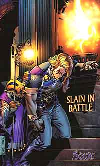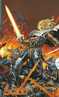 Link zur Ausgabe #2, #3, #4, #5, #6, #7 Scion #1, erschienen im Mai 2002 bei CrossGen Comics Deutschland Autor: Ron Marz, Zeichner: Jim Cheung Ethan ist der jüngste Sohn der Heron-Dynastie und feiert an dem Tag, an dem die Handlung einsetzt, seinen 21. Geburtstag. Zur Feier des Tages muß Ethan zum ersten Mal an einem öffentliches Turnier teilnehmen. Zusammen mit seinen treuen Ziehvater Skink, einem Angehörigen der niederen Rasse, und unter den Glückwünschen seiner Familie bereitet er sich auf den Kampf vor. Vom Schmied bekommt er ein ansehnliches Schwert überreicht sowie eine Rüstung verpaßt und danach geht es weiter in die Arena. Kurz vor dem Erreichen des Wettkampfortes packt Ethan ein seltsamer Fremder fest an dem Unterarm, diese Berührung wird das Leben des jungen Herrschers vom Grunde auf verändern. Nun aber steht das Duell mit Bron, dem Sohn der Raven-Dynastie, an und dieser Gegner hat schon Ethans Brüder im Kampf besiegt. Der Kampf wird ein überraschendes Ende nehmen. Jim Cheungs Zeichenstil mochte ich ja schon seit langem und auch hier finde ich seine Arbeit wieder recht gut, obwohl mir die Kampfsequenz etwas zu unübersichtlich gestaltet ist. Über die Story, die gerade erst ihren Anfang genommen hat, läßt sich zu diesem Zeitpunkt erst wenig sagen. Irgendwie wollen die CrossGen-Macher wohl am Anfang nicht zuviel über ihre neuen Welten erzählen. Scion #2, erschienen im Juni 2002 bei CrossGen Comics Deutschland Autor: Ron Marz, Zeichner: Jim Cheung Ethan hat Bron eine fürchterliche Verletzung im Gesicht zugefügt. Dies bricht alle Regeln des Turniers und so kommt es zu einem Konflikt zwischen den Familien der Heron-Dynastie und der Raven-Dynastie. Die Raven-Dynastie um Bron fordert eine Wiedergutmachung und wünscht Ethan für zwölf Monate, bis die Zeit für ein neues Turnier gekommen ist, mit sich zu nehmen. Ethans Familie ist über diese Forderung entsetzt, doch um Schlimmeres zu verhindern kommt Ethan gegen den Rat seiner Familie dem Wunsch nach. Sehr schnell bekommt Ethan nun die Rachsucht Brons zu spüren. Doch ist er nicht vollkommen allein in seinem Exil, da ihn sein treuer Diener Skink begleiten darf. Außerdem ist da noch eine Frau, die in der Festung der Raven-Dynastie herumschleicht. Vor allem die Zeichnungen, die noch um einiges besser sind als in der ersten Ausgabe, machen aus diesem Comic etwas Besonderes. Ansonsten kommt die Handlung einfach etwas zu langsam in Fahrt. So finde ich die Entscheidung der deutschen Herausgeber auch ganz gut, daß sie ab 2003 immer drei US-Ausgaben in eine deutschen Ausgabe packen wollen. Leider wird dann aber auch das von mir sehr geschätzte Digest-Format eingestampft. Scion #3, erschienen im Juli/August 2002 bei CrossGen Comics Deutschland Autor: Ron Marz, Zeichner: Jim Cheung Ethan findet sich aus seiner Gefangenschaft befreit in der Begleitung seines Dieners Skink und einer Frau namens Ashleigh wieder. So richtig weiß er nicht, was nun mit ihm geschehen soll. Ethans Flucht wird von den Herrschern der Raven-Dynastie eigentlich begrüßt, da sie nun endlich einen Grund haben, um die verhaßten Herrscher der Heron-Dynastie auf dem Schlachtfeld herauszufordern. Bron, der noch ein Huhn mit Ethan zu rupfen hat, will Ethan aber finden und sich für die Schmach, die er in der Arena erfahren hat, rächen. In der Zwischenzeit zeigt Ashleigh Ethan zu welch harten Bedingungen die niederen Rassen in den Mienen arbeiten müßen. Werden diese gentechnisch gezüchteten Arbeitskräften in Ethans Heimat als Diener gebraucht, so werden sie in diesem Land als Sklaven mißbraucht. Beides ist für Ashleigh nicht zu ertragen und so hat sie sich einer Gruppe angeschlossen, die etwas gegen diesen Mißbrauch der niederen Rassen tun will. Sie bittet Ethan darum, daß er dieser Gruppe, die sie als den "Untergrund" bezeichnet, beitritt. Doch bevor er zu dieser Bitte richtig Stellung nehmen kann, wird er von seinen Verfolgern gestellt. Doch Bran ist diesmal nicht daran interessiert, Ethan bloß gefangen zu nehmen. Auch wenn wir diese Art von Geschichten schon öfters in ähnlicher Form von anderen Autoren präsentiert bekommen haben (falls man wie ich schon so viele Comics und ein paar Bücher und Filme konsumiert hat), werten die Zeichnungen von Jim Cheung diese zu einem echten Vergnügen auf. Und bald gibt es dann ja auch die zweimonatliche Dreifachdosis "Scion" und darauf freue ich mich jetzt schon. Scion #4, erschienen im September 2002 bei CrossGen Comics Deutschland Autor: Ron Marz, Zeichner: Jim Cheung Ethan ist, nachdem er das Angebot von Ashleigh abgelehnt hat, dem Untergrund beizutreten, mit seinem treuen Diener Skink wieder auf der Flucht vor Brons Soldaten. Diese Jäger sind aber nicht Ethans einziges Problem, da auch ein finsterer Kopfgeldjäger es auf ihn abgesehen hat. Als Ethan dann doch das rettende Ufer erreicht, stellt er zu seinem Entsetzen fest, daß die Raven-Dynastie nun eine riesige Invasionsflotte zum Angriff auf seine Heimat bereitgestellt hat. Die Bilder von Jim Cheung sollten wirklich jeden Fantasy-Fan dazu bringen, einen Blick in diese wunderbare Abenteuergeschichte zu werfen. Scion #5, erschienen im Oktober 2002 bei CrossGenComics Deutschland Autor: Ron Marz, Zeichner: Jim Cheung Ethan hat sich mit seinem Diener Skink auf den Weg in seine Heimat gemacht. Während der langen Überfahrt auf dem gestohlenen Boot überkommen den jungen Prinzen Zweifel, ob er die richtige Entscheidung getroffen hat. Hätte er nicht vielleicht Ashleigh und den Untergrund unterstützen sollen? Als plötzlich ein unberechenbarer Nordsturm aufkommt, beginnt aber für ihn und Skink der nackte Kampf ums Überleben. Als schon alle Hoffnung verloren geglaubt ist, passiert etwas Unglaubliches. Diesmal will die Spannung nicht so richtig aufkommen und nur die schönen Zeichnungen von Jim Cheung halten das Interesse des Lesers aufrecht. Doch in der nächsten Ausgabe dürfte es wohl wieder spannend werden, denn dann scheint ein Krieg zwischen den 