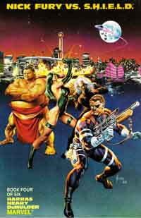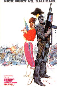 Link zut Ausgabe #2, #3, #4, #5, #6 Nick Fury vs. S.H.I.E.L.D. #1, erschienen im Juni 1988 bei Marvel Comics (Prestige Format). Autor: Bob Harras, Zeichner: Paul Neary, Tusche Kim DeMulder, Farben: Bernie Jaye, Letterer: Janice Chiang, Cover: Jim Steranko, Assistent Editor: Gregory Wright, Editor: Mark Gruenwald, Editor in Chief: Tom DeFalco Der mächtige Helicarrier, das mächtige fliegende Einsatzzentrum der Agentenorganisation mit Namen S.H.I.E.L.D., wurde durch Sabotage zum Absturz gezwungen. Nun versuchen Nick Fury und ein Einsatzteam die mysteriöse Energiequelle des Carriers zu bergen. Der Energiekern wird unter Schwersteinsatz und einigen Opfern geborgen und zum Unwillen von Nick Fury von Agenten der A.I.M. und Hydra entführt. Bei der Attacke der Feinde wird der junge und Fury sehr nahestehende Agent Clay Quatermain schwer verletzt. Ein Anruf aus New York fordert das sofortige Erscheinen von Fury. Stimmen im Dunkeln sprechen über Pläne. Über Pläne und über die Gefahr, die Nick Fury darstellt. Im ROXXON Industrial Research Complex trifft Fury auf seinen "Schläfer", den Agenten Rollins. Rollins hat Nick gerufen. Er ist in einem geheimen Bereich mit Namen "Delta" eingedrungen. Dort stößt Fury auf etwas für ihn Unbegreifliches: Roxxon besitzt Akteneinsicht über alle S.H.I.E.L.D.-Agenten und über den Energiekern. Zusammen dringen die beiden tiefer in den "Delta" Bereich der Anlage ein. Sie erleben mit, wie der Energiekern von seltsam Gekleideten dort hineingetragen wird. Später erfährt Fury, daß Agent Quartermain tot ist. Diese Nachricht trifft Fury schwer. Er beruft aber wegen seines neu erworbenen Wissens eine große Versammlung im S.H.I.E.L.D.-Hauptquartier in New York zusammen. Er begegnet auf seinem Weg durch das Gebäude verschiedenen Freunden und Mitstreitern. Da sind Jasper Sitwell, Commander "Dum Dum" Dugan, die Contessa, Jimmy Woo und Gabe Jones. Alle bekommen zu spüren, was der Tod von Clay dem Mann, der versucht immer die Kontrolle zu besitzen, bedeutet. Dann setzt sich Nick Fury mit dem geheimnisvollen "Kontrollorgan" mit Namen "the Board" in Kontakt. Doch dieses Treffen läuft gar nicht nach seinem Geschmack. Die Leute im Hintergrund, die er nie gesehen hat, wollen ihn hinhalten. Die Leute im Hintergrund, die Stimmen im Dunkeln, setzen Hebel in Bewegung. So wird Agent Rollins von Agent Woo erschossen. Dann ruft das Board Nick aus der Versammlung heraus, um ihn zu stoppen. Doch Fury läßt sich nicht stoppen. Auch nicht als Agent Rollins plötzlich vor ihm steht und behauptet, daß das im Roxxon-Komplex Geschehene nie passiert sei. Fury gibt seinem Zorn gegen diese Lügen und die Scheinheiligkeit des Boards Ausdruck und beginnt mit seiner Flucht. Alle S.H.I.E.L.D.-Agenten bekommen den Befehl, Fury einzufangen und einzusperren. Furys engste Freunde (Contessa, Dum Dum und Gabe) können nicht glauben, was da passiert und Dugan kann noch gerade verhindern, daß Fury nicht durch Rollins ermordet wird. Nun ist Fury auf der Flucht. Verschwörungen auf höchster Ebene und das seltsame Ableben und Verhalten von ehemals "guten" Agenten scheint das Hauptthema dieser actionlastigen Serie zu sein. Und dies ist ja auch nicht schlimm. Es ist doch immer wieder spannend zuzusehen, wie ein Held alles verliert und sich sein Ziel dann hart erkämpfen muß. Und wenn es sich bei dem Helden um einen solch guten Charakter wie Agent Nick Fury handelt, dann macht die Sache noch ein wenig mehr Spaß. Bob Harras kann sogar, außer daß er das Geschick der Mutantenserien handhabte, richtig nette Geschichten erzählen. Gut, daß ein normaler Mann so einfach einen hochradioaktiven Kern durch die Gegend trägt und das auch noch überlebt, ist ein bißchen unglaubwürdig, war aber für die Geschichte wichtig. Danach ging die Sache dann auch schön spannend weiter und wurde auch noch von Paul Neary und Kim DeMulder beachtlich in Szene gesetzt. Diese Miniserie fand sogar eine deutsche Bearbeitung durch den Bastei Verlag. Nick Fury vs. S.H.I.E.L.D. #2, erschienen im Juli 1988 bei Marvel Comics (Prestige Format) Autor: Bob Harras, Zeichner: Paul Neary, Tusche Kim DeMulder, Farben: Bernie Jaye, Letterer: Janice Chiang, Cover: Bill Sienkiewicz, Assistent Editor: Gregory Wright, Editor: Mark Gruenwald, Editor in Chief: Tom DeFalco Die Polizei scheucht ein paar Obdachlose aus dem Inneren der Grand Central Station. Ein Penner macht sich auf den Weg, doch bevor er sein Ziel erreichen kann, versucht ihn eine Gang zu ärgern. Doch plötzlich ist der vermeidliche Penner verschwunden. Er bahnt sich seinen Weg durch die Abwasserkanäle der Stadt. Unter der Stadt sind auch andere, die vor der Welt da oben geflüchtet sind. Doch dieser Mann ist nicht wie sie, er dringt noch tiefer ein. Als er sein Ziel erreicht hat, löst eine Berührung einen Mechanismus aus, der eine Tür öffnet. Nick Fury ist in Sicherheit. Dum Dum und Gabe sitzen in einer Zelle. Sie verstehen noch immer nicht, was passiert ist. Sie wissen nicht, warum plötzlich alle Welt den Kopf von Nick haben will und warum seine Jäger selbst vor dem Gebrauch von Waffen nicht zurückschrecken. Dann taucht Rollins auf und er führt sie zum Konzil. Wieder bahnt sich ein verkleideter Nick Fury seinen Weg durch die finsteren Straßen. An jeder Ecke erkennt er die gut getarnten S.H.I.E.L.D. Agenten. Doch einer entgeht ihm. In einem anderen Raum treffen Dum Dum und Gabe auf Val und Jasper. Sie reden kurz über die letzten Ereignisse, werden dann aber von Rollins und Jimmy Woo unterbrochen. Das Verhör beginnt. Fury steigt wieder in die Tiefe hinab. Dann taucht sie auf. Sie ist eine Agentin und sie ist gekommen, um ihn zu erledigen. Sie erweist sich für den gehetzten S.H.I.E.L.D. Direktor als echte Gegnerin. Es kommt zu einem harten Schlagabtausch. Das Konzil redet mit der Countess. Am Ende der Besprechung wird ihr eine harte Frage gestellt. Würde sie, wenn es von ihr verlangt wird, Nick Fury töten? Sie kann es nicht beantworten. Im Untergrund der St