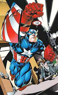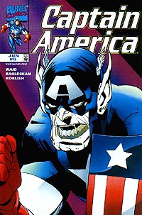 Link zur Ausgabe #1 bis #5, weiter mit Ausgabe #7 Captain America #6, erschienen im Juni 1998 bei Marvel Comics Autor: Mark Waid, Zeichner: Dale Eaglesham, Tusche: Scott Koblish, Farben: Joe Rosas & Digital Chameleon, Editor: Mark Idelson, Editor in Chief: Bob Harras Captain America liegt in einer Abstellkammer und ist durch eine Skrullfessel in seinen Handlungen stark eingeschränkt. Die Fessel paßt sich jedem Befreiungsversuch des Gefangenen sofort an und so muß sich unser Held schon etwas ganz besonderes einfallen lassen, um sich zu befreien. Sein Widersacher fühlt sich indessen in seiner Rolle als gefeierter Nationalheld und Mitglied der Rächer sichtlich wohl. Als es dem falsche Captain dann auch noch gelingt, das Leben des Präsidenten zu retten, bekommt er seine große Chance. Bevor der sich endlich befreite echte Captain America ihn aufhalten kann, verkündet der falsche Held, daß es die Skrulls geschafft hätten, die Bürger Amerikas zu unterwandern. Jeder zwanzigste Bürger der Vereinigten Staaten ist in Wirklichkeit ein Skrull und um seine Worte zu untermauern, enttarnt er seine zwei eigenen Skrullverbündeten. Diese werden von der aufgebrachten Menge erschlagen. Als der echte Captain America auftaucht, verwandelt sich sein Doppelgänger auch in seine Ursprungsform zurück, damit er seine Theorie noch weiter untermauern kann. Danach flüchtet er in der Form eines Flugdinosaurier und hinterläßt eine langsam im Chaos versinkende Stadt. Anscheinend scheinen die Bürger des Landes seine Lügen zu glauben und schlagen nun auf jeden ein, der auf sie den Eindruck macht, auch nur irgendwie "anders" zu sein. Entsetzt schaut sich Captain America an, was er angeblich angerichtet hat. Hey, eine richtig spannendes Captain America-Comic. Dazu noch ein gut gezeichnetes. Dale Eaglesham ist wirklich ein richtig guter Zeichner, der es langsam geschafft hat, sich in der ersten Reihe der Superheldenzeichner zu etablieren. Und ab nächste Ausgabe übernimmt dann Andy Kubert die Verantwortung am Zeichenbrett. Es kann also sogar noch besser werden. Captain America #7, erschienen im Juli 1998 bei Marvel Comics Autor: Mark Waid, Zeichner: Dale Eaglesham, Andy Kubert, Tusche: Scott Koblish, Jesse Delperdang, Farben: Joe Rosas & Digital Chameleon, Editor: Mark Idelson, Editor in Chief: Bob Harras Ein Skrull hat es geschafft, die Bewohner der USA in Panik zu versetzten. Diese vermuten jetzt, daß hinter jedem ihrer Mitbürger ein Skrull steckt und die Rächer haben alle Hand voll zu tun, um diese Panik etwas einzudämmen. Captain America wartet darauf, daß der Skrull, der für dieses Desaster verantwortlich ist, sich wieder an die Öffentlichkeit wendet. Er hofft sein Double mit der Hilfe von ein paar Freunden zu demaskieren. Eigentlich hätte diese Storyline das Zeug zu einem echten Klassiker gehabt. Erst der langsame Aufbau, dann die Enthüllungen und nun........ Das Finale war wieder einmal sehr simpel konstruiert und statt eine platte pathetische und patriotische Ansprache am Ende hätten wir etwas wirklich Überraschendes verdient. Aber bei einem so einfach gestrickten Held wie Captain Amerika sind Überraschungen halt was seltenes. Die beteiligten Zeichner taten aber ihr Bestes. |