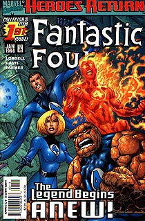 #5 Inhalt der Ausgabe Fantastic Four #1, Vol.3 als Zeitungsnachricht Die Rückkehr der Fantastischen Vier. Einsatz in Paris Fantastic Four #2, Vol.3, erschienen im Februar 1998 bei Marvel Comics Autor: Scott Lobdell, Zeichner: Alan Davis, Tusche: Mark Farmer, Farben, Liquid!, Letterer: Richard Starking & Comicraft, Editor: Mark Powers, Editor in Chief: Bob Harras Die Fantastischen Vier haben ein neues Zuhause in einer Lagerhalle am New Yorker Hafen bezogen. Mit der Einrichtung haben die Helden aber noch einige Schwierigkeiten. Ben und Johnny wollen deshalb auch weiterhin nicht dort wohnen, doch der Anblick ihrer Postbotin läßt sofort alle Gedanken an einen vorzeitigen Auszug verschwinden. Trotzdem gehen die beiden aus und albern miteinander herum. Die Richards bekommen aber plötzlich Besuch von einem unsichtbaren Gast, der es ganz allein auf Susan abgesehen hat. Sie wehrt sich so gut wie sie kann und als dann auch noch Ben und Johnny auftauchen, schaffen sie es durch einen von Reed ausgeheckten Plan den unliebsamen Gast loszuwerden. Warum dieser glaubt, mit dem Tod der Unsichtbaren das Leben von Millionen zu retten, bleibt unbeantwortet. In einem Nebenplot plant ein sprechender Affe die Vernichtung der Menschheit. Scott Lobdell ist ja ein grandioser Superheldenautor. Er schafft es, sowohl dem persönlichen Miteinander der Hauptpersonen als auch der Actionhandlung genug Raum auf den 22 Seiten eines Heftes zu geben. Und die Zeichnungen sind auch noch ganz toll. Besser kann ein "normales" Superheldencomic kaum sein. Fantastic Four #3, Vol.3, erschienen im März 1998 bei Marvel Comics Autor: Scott Lobdell, Zeichner: Alan Davis, Tusche: Mark Farmer, Farben, Liquid!, Letterer: Richard Starking & Comicraft, Editor: Mark Powers, Editor in Chief: Bob Harras Eigentlich wollten die Fantastischen Vier an diesem Silvesterabend zusammen zu einer gemeinnützigen Neujahrsparty gehen, doch Reed Richards mußte mal wieder eine außergewöhnliche Entdeckung machen, die ihn nun dazu bringt, daß er seine Freunde und Ehefrau vorausschickt. Er selbst versucht durch die Benutzung verschiedener Datenscanner Informationen über ihren letzten Angreifer zu sammeln. Zur selben Zeit spürt der Silver Surfer, der sich in Begleitung der blinden Bildhauerin Alica Masters befindet, daß etwas aus dem Inneren der Erde versucht die Welt zu zerstören. An der Empire State University macht Cathy Polombo eine seltsame Entdeckung. Da sie sich nicht selbst zu helfen weiß, ruft sie Reed an. Da dieser aber beschäftigt ist, meldet sich nur der Anrufbeantworter. Als sie ihren Spruch aufsagt, wird sie plötzlich durch eine fremde Stimme unterbrochen. Die Affen, die bei ihr im Labor sind, können reden. Daß sie dazu in der Lage sind, hängt damit zusammen, daß sie die Begleiter eines russischen Kosmonauten sind, der einst von denselben kosmischen Strahlen getroffen wurde, die auch die Fantastischen Vier zu dem gemacht haben, was sie sind. Doch Dr. Ivan Kragoff, der sich als Superkrimineller den Namen Red Ghost gegeben hat und seine drei Superaffen Mikhlo, Peator und Igor haben sich verändert. Alle drei Affen können nun über dieselben Superkräfte verfügen, wogegen sich der Red Ghost in ein Wesen von kindlichem Gemüt verwandelt hat. Trotzdem schafft es Reed Richards, der die Nachricht abgehört hat, die Affen zu überwältigen und sie daran zu hindern, Giftgas gegen die Menschen von New York einzusetzen, womit sie gegen die schlechte Behandlung ihrer Artgenossen protestieren wollten. Doch Reed geht mit einem schlechten Gefühl aus dieser Sache hinaus. Wenn sich die Fähigkeiten der Affen verändert haben, kann dies dann auch mit denen der Fantastischen Vier passieren? Am Ende dieser Ausgabe steht der Mole Man einem mächtiges Wesen gegenüber. Die Haupthandlung kann mich nicht so richtig überzeugen, dafür erzeugen die Nebenhandlungen genug Spannung, um sich auf die nächste Ausgabe zu freuen. Leider verläßt aber mit dieser Ausgabe das gerngesehene Zeichner/Tusche-Team Alan Davis und Mark Farmer diese Serie. Davis und Farmer kümmerten sich dann ja um die Abenteuer der X-Men. Scott Lobdell wird dann ja auch bald durch den langjährigen X-Men Autor Chris Clearmont ersetzt. Fantastic Four #4, Vol.3, erschienen im April 1998 bei Marvel Comics Plot: Scott Lobdell, Autor: Chris Claremont, Zeichner: Salvador Larroca, Tusche: Art Thibert, Farben: Steve Oliff, Letterer: Richard Starking & Comicraft, Editor: Mark Powers, Editor in Chief: Bob Harras Ben Grimm genießt den Morgen und den Anblick auf die Freiheitsstatue. Dann aber folgt ein Ärgernis, da die morgendliche Zeitung von der Yancy Street Gang bearbeitet worden war. Eine Aufheiterung folgt aber durch das Erscheinen der reizenden Briefträgerin Billie. Doch auch dieses Treffen wird gestört, da vom ehemaligen Hauptquartier der Fantastischen Vier plötzlich grelle Strahlen ausgehen. Ben macht sich sofort auf den Weg und gibt dabei seinen Freunden Bescheid. Auf dem Dach des Hochhauses erkennt er die Umrisse von zwei Personen. Als er näher herankommt, stellt er fest, daß es sich bei diesen beiden um niemand anderen handelt als um den Silver Surfer und Bens große Liebe Alica Masters, die es aber mittlerweile vorzieht, zusammen mit dem Surfer durchs All zu reisen. Dem Surfer geht es sichtlich schlecht. Er ist vollkommen mitgenommen von etwas großen Bösen, das irgendwo tief in der Erde steckt. Der Surfer nimmt aber trotz seines geschwächten Zustandes die Spur wieder auf und erreicht in Begleitung der Fantastischen Vier das kleine kanadische Städtchen Yorkton. Die Bewohner sind gar nicht überrascht über den Anblick der Helden und dies verwundert die Helden. Im Gespräch mit dem lokalen Polizeibeamten erfahren sie, daß es eigentlich nichts Ungewöhnliches hier zu finden gibt. Dann taucht aber der Mole Man auf und dieser weiß von einem großen Übel zu berichten. Er zeigt den Fantastischen Vier und dem Surfer die schwächlichen Überreste seiner Moloids. Alle scheinen 