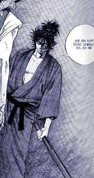 Vagabound #1, erschienen bei Egmont- Manga & Anime Autor & Zeichner: Inoue Takehiko Matahachi und Takezo sind als Bergsamurai in eine Schlacht gegangen und wollten durch die Ermordung des feindlichen Generals Ruhm und Ehre gewinnen. Stattdessen finden sie sich am Rande des Schlachtfeldes wieder, auf dem sie knapp dem Tod entronnen sind. Takezo nimmt sich seines verletzten Freundes an und schleppt sich mit ihm durch die Gegend. Als sie von zwei Samurai gestellt werden, scheint ihre letzte Stunde geschlagen zu haben, doch beweist Takezo, daß er durchaus in der Lage ist, sein Leben zu verteidigen. Nach dem Kampf bricht aber auch er erschöpft zusammen und findet sich später gesäubert und gepflegt in der Obhut einer Frau wieder. Diese versucht ihre Tochter den Männern als Braut schmackhaft zu machen. Matahachi, der in seinem Heimatdorf eine Verlobte hat, hält sich zurück. Takezo scheint hingegen kein Interesse an einer Heirat zu haben. Dann entdecken die Freunde, daß ihre Gastgeberinnen sich durch das Einsammeln von Waffen, die nun im Massen auf dem riesigen Schlachtfeld liegen, eine Lebensgrundlage geschaffen haben. Die Frauen haben sich mit diesem Nebenverdienst aber nicht nur Freunde geschaffen, da ihnen ein Bandenanführer, der schon den Mann der Familie getötet hat, dies untersagt. Als er zu einem Kontrollbesuch auftaucht, stellen sich die beiden Freunde, die den Frauen helfen wollen, gegen diesen. Es kommt zu einem folgenschweren Kampf. Später muß Takezo feststellen, daß sich, seit er in die Schlacht gezogen ist und sich auch danach mit Waffengewalt gegen eine Gefangennahme durch die Samurai des Shogun verteidigt hat, in seinem Heimatdorf einiges geändert hat und daß der Feind auch dort schon auf ihn wartet. Inoue Takehiko erzählt die Geschichte von Takezo sehr gradlinig und mit sehr viel Detailfreude. Dabei stellt der Leser sehr schnell fest, daß er es hier mal endlich mit einer sehr ernsthaften Samurai-Geschichte zu tun hat, die nichts mit den Albernheiten einer Serie wie "Kenshin" gemein hat. Als Grundlage für diese Geschichte dient die Biografie über "Miyamoto Musashi", der 1548 geboren wurde und dessen Leben schon viele Geschichtenerzähler inspiriert hat . Da Miyamoto Musashi sich als herumziehender Samurai ideal als Serienheld eignet und er einen starken Überlebenswillen hatte, der von seiner Qualität als Kämpfer noch übertroffen wurde, bietet sein Leben noch genug Stoff für viele weitere spannende Abenteuer. Die Kampfszenen in diesen Manga für Erwachsene sind mir aber noch etwas zu grob und ungeschickt zu Papier gebracht, da fehlt es noch etwas an Eleganz und an Übersichtlichkeit. An brutaler Härte fehlt es diesen Kämpfen aber überhaupt nicht. |