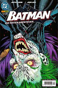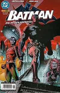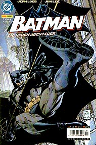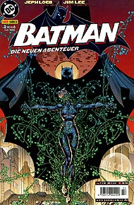 Link zur Ausgabe #2, #3, #4, #5, #6 Batman - Die neuen Abenteuer #1 von 6, erschienen im März 2003 bei Panini Autor: Jeph Loeb, Zeichnungen: Jim Lee, Tusche: Scott Williams, Übersetzung: Steve Kups Batman versucht einen entführten Millionärssohn zu retten. Während der tatsächliche Entführer mit der Übergabe des Lösegeldes beschäftigt ist, setzt Batman die Bewacher des Jungen außer Gefecht und befreit ihn. Leider hat Batmans Zeitplan einen kleinen Fehler und so läuft Batman Killer Croc in die Arme, der das Lösegeld schon in seinen Händen hält. Die beiden verfallen den alten Ritualen des Kampfes von Gut und Böse und schlagen sich solange, bis einer von ihnen besiegt ist. Sie merken dabei nicht, wie jemand diesen Kampf ausnutzt, um mit dem Lösegeldkoffer zu verschwinden. Alles wird noch schlimmer, als Batman während der Verfolgung des Lösegeldes sein Batseil durchgeschnitten bekommt, was dazu führt, daß Batman ohne jeglichen Halt in die Tiefe stürzt. Schnell merkt der Betrachter, daß es Batman hier mit einem außergewöhnlichen Gegner zu tun hat, der viel zu schlau ist, um selbst gegen Batman anzutreten. Dafür benutzt er einfach die kampferprobten Gegner des dunklen Ritters. In der außergewöhnlich gut gestalteten Rückblende erhalten wir auch mal endlich wieder einen Einblick in die Jugend unseres Helden. Ich hoffe nur, daß der Jugendfreund, den wir in dieser Ausgabe vorgestellt bekommen, nicht auch der wahre Gegner unseres Helden ist, dies wäre dann ein gar zu einfacher Schachzug eines eigentlich ja sehr intelligenten Autors vom Schlage eines Jeph Loeb. Die Zeichnungen von Jim Lee halten genau das, was wir uns von seinem Einstig ins Batman-Universum erhofft haben. Er zeichnet in gewohnt herausragender Qualität Bilder, die beweisen, daß er unter den Zeichnern, die den klassisch, klaren und sehr realitätsnahen Stil benutzen, seit nun schon über 15 Jahren zu den Besten seiner Art zählt. Bedenkt man dazu noch, daß Jim Lee außer seiner Zeichnertätigkeit auch noch eine gar nicht so unwichtige Comicabteilung des DC-Verlages mit dem Namen "Wildstorm" leitet, dann kann man vor dieser unermüdlichen Lust, sich ans Zeichenbrett noch zu setzen, nur den Hut ziehen (wenn man einen hätte). Andere Top-Zeichner, die einst ausgezogen waren, um die amerikanische Comicszene zu verändern, haben da leider schon seit langem keine Lust mehr zu. Hoffen wir mal, daß diese neue Miniserie auch bis zum Ende mit dieser Qualität aufwartet und nicht wie bei "DK2" mit einem guten Start beginnt, um dann ganz schnell in die Tiefe der Mittelmäßigkeit abzutauchen. Batman - Die neuen Abenteuer #2 von 6, erschienen im Mai bei Panini Autor: Jeph Loeb, Zeichnungen: Jim Lee, Tusche: Scott Williams, Übersetzung: Steve Kups Batman ist sauer, daß er nicht weiß, wer ihm da seine Knochen gebrochen hat, so setzt er alles daran, den wahren Drahtzieher zu finden, der hinter der Entführung eines Kindes aus reichem Hause steckte. Denn daß Killer Croc sich dies nicht selbst ausgedacht hat, ist klar. So sucht Batman Killer Croc im Arkham Asylum auf und macht ihn dort so sauer, daß es diesem sogar gelingt, aus der Anstalt auszubrechen. Batman verfolgt Croc und stöbert diesen auf, wie er von Catwoman seinen Anteil verlangt. Dann taucht Batman auf, der es trotz erheblicher Reifenschäden schafft, noch rechtzeitig an Ort und Stelle zu sein (wow, was für ein Held). Als Killer Croc vom F.B.I. wegbefördert wird, versucht Batman aus Catwoman mehr Infos herauszubekommen. Diese klärt ihn nur dahingehend auf, daß es Poison Ivy war, die sie manipuliert hatte, so daß sie das Lösegeld bei ihr ablieferte. Da Catwoman über diese aufgezwungene Partnerschaft zwischen ihr und Poison Ivy genauso wenig begeistert ist, erklärt sie sich bereit, Batman Bescheid zu geben, falls sie eine Spur von Ivy findet. Auf jeden Fall, so will sie wissen, hat sich Ivy nach Metropolis abgesetzt. Und dann passiert etwas, womit selbst diese beiden so unterschiedlichen Kostümträger nicht gerechnet haben: sie küssen sich. Irgendwie scheinen Jeph Loeb und Jim Lee ziemlichen Spaß bei ihrer Arbeit an Batman zu haben. Sie suchen sich aber auch genau die richtigen Figuren aus dem Batman-Universum aus, um eine publikumswirksame Lektüre zu schaffen. Außerdem führen sie mit dem immer noch mysteriösen Jugendfreund Thomas Elliot eine neue Person ein, um den Batman-Mythos zu erweitern und um die Vergangenheit unseres Helden zu bereichern. Bisher ist das Ganze recht kurzweilig und wenn sich herausstellen sollte, daß Thomas Elliot wirklich der geheime Schurke im Hintergrund ist, der auf seinen Jugendfreund neidisch ist, erst dann werden diese Kritiken zu dieser Serie wirklich kritisch. Batman - Die neuen Abenteuer #3 von 6, erschienen im Juni bei Panini Autor: Jeph Loeb, Zeichnungen: Jim Lee, Tusche: Scott Williams, Übersetzung: Steve Kups Batman und Catwoman, die sich nun auch als Liebespaar zusammengetan haben,