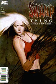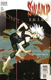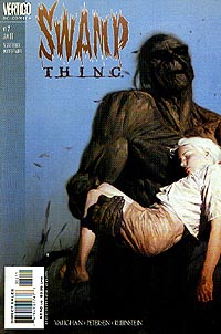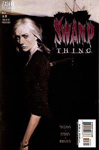 Link zur Ausgabe #2, #3, #4, #5, weiter mit #6 Swamp Thing #1, erschienen bei Vertigo (DC) im Mai 2000 Eine Mutter redet über ihre Tochter. Ihre Tochter, die nicht so ist, wie sich diese Mutter das gewünscht hat. Dazu sehen wir harmonische Bilder des Familienlebens. Mutter, Vater und Tochter, die freundlich miteinander umgehen. Marry steigt zu ihrer Mitschülerin und besten Freundin Cathrine ins Auto. Marry erzählt ihr von einem Traum, in dem es um Pflanzen ging. In der Schule bricht der letzte Tag vor den Ferien an. Am Ende redet der Lehrer auf die fliehenden Schülerinnen ein und wünscht ihnen alles Gute und gibt noch ein paar Ratschläge und wichtige Lebenstips für das Leben nach der Schule. Als die Schülerinnen den Raum fast vollständig verlassen haben, redet die im Klassenzimmer sitzengebliebene Marry noch mit ihm. Der Lehrer sagt ihr, daß sie ihr Leben nicht verschwenden soll und sie soll sich immer trauen, die richtigen Fragen zu stellen. Während des Fechttrainings hat Marry eine Erscheinung. Sie sieht einen Mann im Regenmantel. Sie ist verwirrt darüber, wird aber durch ihren Freund David abgelenkt. David macht ihr ein Geschenk. Am Abend sitzen Marry, Cathrine und David unter dem Hollywoodzeichen zusammen und unterhalten sich. David versucht die Mädchen mit einer lustigen Geschichte zu beeindrucken, doch ist diese Geschichte alles andere als neu. Nun liegt es an Marry, eine Geschichte zu erzählen. Eine Geschichte über einen Wissenschaftler, der getötet wird. Der aber in den Sümpfen eine Verbindung mit der Natur eingeht und wiedergeboren wird. Nachdem Marry ihre Geschichte beendet hat, schwören sie sich, sich auch weiterhin so oft wie möglich an diesem Ort zu treffen. Der Abschlußball wird geplant. Cathrine hat sich mit Parker verabredet, der von allen für schwul gehalten wird. David muß eine schlimme Erfahrung durchmachen. Seine Eltern planen, sich scheiden zu lassen. Die Mädchen putzen sich für den großen Abend heraus. Dort erfahren wir, daß Marry eine lange Zeit im Koma lag und daß sie sich kaum an das Leben vor dem Koma erinnern kann. Der Abschlußball. Marry sitzt mit Parker am Tisch und fragt sich, wo ihre Freunde sind. Sie schaut nach und sieht, wie die beiden sich küssen. Dann passiert etwas. Marry verwandelt sich in ein anderes Wesen. Ein blondes Mädchen, das die beiden Liebenden mit der Hilfe der Naturkräfte tötet. Danach erschafft sie den Körper von Marry neu und schneidet ihr die Kehle durch. Polizisten fragen sich am Tatort, was passiert ist. Die Nachricht über die drei Toten verbreitet sich. Eine Zeitungsleserin ist entsetzt. Beruhigend legt sich eine grüne Hand auf die ihre. Ein Gottesdienst wird abgehalten. Die Eltern von Marry sind in tiefer Trauer gefangen. Plötzlich steht eine Frau bei ihnen. Sie wird als Abby Cable erkannt. Diese korrigiert sie und sagt, daß sie nun Abby Holland heiße. Und sie ist gekommen, um ihnen einige Fragen zu beantworten. Abby weiß, daß alles mit ihrer Tochter Tefé im Zusammenhang steht. Das original Swamp Thing bleibt erst einmal im Hintergrund und so