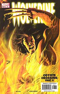 zu den Ausgaben #1-#5, #7, #8, #9, #10, #11 Wolverine (Vol.3) #6, erschienen im Dezember 2003 bei Marvel Comics Autor: Greg Rucka, Zeichner: Darick Robertson, Tusche: Tom Palmer, Farben: Studio F, Letterer: Virtual Calligraphy's Rus Wooten, Assistent Editor: Warren Simons, Editor: Axel Alonso, Editor in Chief: Joe Quesada, Cover: Esad Ribic Cassie Lathrop kann die Begegnung mit Wolverine nicht vergessen. Dabei kennt sie nicht mal seinen Namen und kann auch der Phantombildzeichnerin sein Äußeres nicht richtig beschreiben. Auch in ihren Träumen spielt Wolverine eine große Rolle. Logan selbst geht es gar nicht gut. Nach seiner Auseinandersetzung mit der Bruderschaft, in deren Verlauf er in einen Beserkerrausch gefallen ist und dreiundzwanzig Menschen getötet hat, treiben ihn düstere Gedanken voran. Er ist drei Tage mit dem Motorrad gefahren, nur um in einer Bar in New York, die von allerlei seltsamen Mutanten besucht wird, einen guten Freund zu treffen. Der Freund ist Priester und ein ehemaliges Mitglied der X-Men namens Kurt Wagner (Nightcrawler). Erst spät erfährt Kurt von dem Blutrausch und von der Angst seines Freundes, daß dieser immer mehr zu einem wilden Tier wird, das gerne tötet. Kurt und auch Logan wissen aber, daß Logan kein Tier ist. Dies ist eine sehr ruhige Ausgabe mit wirklich bemerkenswerten Momenten. Außerdem weiß man nach der Lektüre dieser Ausgabe, warum man diese Charaktere, die sich hier in einer Kneipe betrinken, so unwahrscheinlich gerne hat. Wolverine (Vol.3) #7, erschienen im Januar 2004 bei Marvel Comics Autor: Greg Rucka, Zeichner: Leandro Fernandez, Farben: Studio F, Letterer: Virtual Calligraphy's Rus Wooten, Assistent Editor: Warren Simons, Editor: Axel Alonso, Editor in Chief: Joe Quesada Eigentlich wollte Logan nur etwas Benzin. Dabei stößt er aber auf zwei Typen, die gerade den Tankstellenangestellten umgebracht haben. Einen der beiden läßt Logan ersteinmal am Leben. Als der Mann ihn davon zu überzeugen versucht, daß er unschuldig ist, führt er Logan zu einem LKW. In dem Laderaum des LKWs liegen die toten Körper vieler illegaler Einwanderer. Sie sind in der Hitze umgekommen. Sie hatten nie eine Chance. Ein Mann namens Ritter soll dies alles geplant haben. Logan sperrt den Mann zu den Toten und fährt mit dem Truck nach El Paso. Inzwischen versucht Agent Cassie Lathrop eine Spur von Logan zu finden. Dies ist nicht so einfach. Sie kennt nicht seinen Namen und auch sonst scheint der Mann sehr schwer zu finden zu sein. Nun macht sie aber einen Veteran ausfindig, der Logan aus seiner Zeit in Vietnam kennt. Er kann sie aber nicht zu ihm bringen. Dies geht nicht. Cassie glaubt nun nicht mehr daran, daß sie Logan jemals wiedersieht. Im Fernsehen erfährt sie aber von dem LKW und den Toten. Außerdem beschreibt der von Logan am Leben gelassene Mann den angeblich für dies alles Verantwortlichen den Reportern. Nun hat Cassie wieder eine Spur. Logan sucht einen alten Bekannten auf. Und er fragt Nestor nach einem Mann namens Ritter. Dies ist wieder ein sehr einfacher Storyaufbau und wieder wird Logan schnell zum Rächer der unschuldigen Opfer eines grausamen Verbrechens. Die Zeichnungen von den mir bis dahin völlig unbekannten Leandro Fernandez gefallen mir ausgesprochen gut. Sein sehr eleganter und klarer Zeichenstil paßt sehr gut zu dieser Serie. Wolverine (Vol.3) #8, erschienen im Februar 2004 bei Marvel Comics Autor: Greg Rucka, Zeichner: Leandro Fernandez, Farben: Studio F, Letterer: Virtual Calligraphy's Rus Wooten, Assistent Editor: Warren Simons, Editor: Axel Alonso, Editor in Chief: Joe Quesada Während die Polizei durch den von Logan am Leben gelassenen Menschenschmuggler auf die Aktivitäten eines gewissen Ian Ritter aufmerksam gemacht werden, ist Logan längst zu diesem unterwegs. Doch bevor es ihm gelingt aus Ritter Informationen herauszupressen, wird dieser erschossen. Auch Logan bekommt eine Kugel ab, die jeden anderen Menschen getötet hätte. Der Schütze setzt das Gebäude in Brand, wird dann aber durch Logan am Weggehen gehindert. Nun erreichen auch die Polizei und Cassie Lathrop, die sich den Ermittlern angeschlossen hat, das Anwesen. Während die anderen Polizisten auf die Feuerwehr warten, springt Cassie in das brennende Gebäude. Bald bereut sie diesen Schritt, doch dann steht sie plötzlich Logan gegenüber. Dieser gibt ihr den Rat, daß sie nicht mehr hinter ihm herjagen soll. Logan ist nun hinter einem gewissen Rojas her. Dieser nutzt die Verzweiflung seiner Landsleute aus, damit diese für ihn Drogen über die Grenze schaffen. Diese Art der Ausbeutung kann Logan gar nicht gutheißen und so will er Rojas einen Besuch abstatten. Bei der Überquerung des Grenzflusses wird er von Cassie beobachtet. Anscheinend hält sie sich nicht an seinen Rat. Dies ist eine kurzweilige und spannende Ausgabe. Wolverine (Vol.3) #9, erschienen im Februar 2004 bei Marvel Comics Autor: Greg Rucka, Zeichner: Leandro Fernandez, Farben: Studio F, Letterer: Virtual Calligraphy's Rus Wooten, Assistent Editor: Warren Simons, Editor: Axel Alonso, Editor in Chief: Joe Quesada Ein Grenzfluß kann Logan nicht aufhalten und so macht er sich auf der mexikanischen Seite auf die Suche nach Rojas. Dessen Kontaktleute sind schnell gefunden und auf seine direkte Art und Weise läßt Logan ihnen keine Wahl. In einem Fahrzeug wird er zu Rojas Hauptquartier gebracht. Agentin Lathrop folgt einem Hinweis und landet bald in der von Nestor geführten Spelunke. Nestor weiß nicht, warum es immer Frauen gibt, die seinen Freund aus dem einem oder anderen Grund aufspüren wollen. Logan dringt bis zu Rojas vor und erlebt eine Überraschung. Rojas ist eine Frau und diese ist auch noch schwanger. Sie bittet ihn darum, dass er sein Ding schnell durchzieht, da sie dringend Schlaf benötigt. Die Actionsequenzen sind richtig gut gezeichnet. Nochmals Lob an Leandro Fernandez. Wolverine (Vol.3) #10, erschienen im März 2004 bei Marvel Comics Autor: Greg Rucka, Zeichner: Leandro 