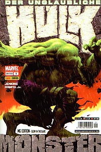 Der unglaubliche Hulk #1, erschienen im Juni 2003 bei Panini Autor: Paul Jenkins, Zeichner: John Romita jr. Nein, Doktor Bruce Banner hat es wirklich nicht leicht. Er leidet an einer Nervenkrankheit, die ihn langsam umbringt und er leidet nach wie vor unter dem Tod seiner geliebten Ehefrau. Außerdem wird er, wenn er die Kontrolle über sich verliert, zu einem grünen Monster, das er mal etwas zu kontrollieren glaubt und mal nicht. Um sich seiner Gefühle klar zu werden, hat er sich in Therapie begeben und so erzählt er Dr. Leonard Samson, dem Hulk-Experten schlechthin, was ihn bedrückt und durch den Kopf geht. Und am meisten geht ihm zur Zeit die Ermordung seiner Frau durch Emil Blonsky durch den Kopf. Eine seiner vielen Hulk-Identitäten hat Blonsky am Ende vergeben. Doch hätte auch Bruce Blonsky vergeben? Diese Frage wird halbwegs beantwortet, nachdem General Ross, der Vater seiner Frau, Bruce etwas Ungeheuerliches zeigt. Wieder einmal scheint der Hulk außer Kontrolle zu geraten, doch diesmal wird er dabei als Werkzeug eines sich rächenden Vaters benutzt. Es ist eigentlich sehr schade, daß die deutschen Marvelmacher nicht alle von Paul Jenkins geschriebene Ausgaben herausbringen, sondern erst mit den Ausgaben beginnen, die von Fan-Liebling John Romita jr. gezeichnet wurden. So muß sich der Leser ersteinmal an viele Dinge gewöhnen, die sich seit den letzten deutschen Hulk-Ausgaben verändert haben. Zum einen ist Bruce an einer tödlichen Krankheit erkrankt und irgendwie ist ihm klar geworden, daß er über seine Hulk-Identität nicht die Kontrolle hat, die er zu haben glaubte. Auf jeden Fall zeigt sich aber hier, welch großes Potential in einer so einfache Heldengeschichte wie die vom Hulk steckt. Nicht umsonst kam die erste US-Serie auf stolze 474 Ausgaben, von denen mich die von Peter David geschriebenen Hefte lange Zeit glänzend unterhielten. Interessant an dieser Ausgabe ist auch zu sehen, wie sich das persönlichen Schicksal des Helden mit denen seiner Gegner verbindet. So finden wir hier gleich zwei sehr gut erzählte Monstergeschichten, die beide sehr tragisch sind. Und für solche Geschichten scheint Paul Jenkins einfach der richtige Mann zu sein. Der unglaubliche Hulk #2, erschienen im Juli 2003 bei Panini Autoren: Sean McKeever, Paul Jenkins, Zeichner: Kyle Hotz, John Romita jr. Der Hulk hat eine Begegnung mit einem Superschurken namens Killer Shrike. Dieser will, obwohl ihn seine Begleiterin Nadine davon abrät, noch einmal etwas Geld stehlen. Der Diebstahl glückt, doch das überraschende Zusammentreffen mit dem Hulk, dessen Erscheinen der Schurke ganz falsch deutet, endet für Killer Shrike sehr tragisch. Danach scheint die Welt von Bruce Banner wieder in Ordnung zu sein. Er hat eine Frau und zwei Kinder, er ist in seinem Beruf sehr erfolgreich und jeder Tag scheint ein Samstag zu sein. Wären da nicht diese Alpträume, in denen er von einem grünen Giganten bedroht wird, wäre sein Leben eigentlich als sorgenfrei zu bezeichnen. Doch ein Anruf läßt neue Ängste in Bruce Banner wach werden. Die erste Geschichte finde ich ganz unterhaltsam und die Fehleinschätzung des Schurken und ihre Folgen passen zu den düsteren Gedanken über Verlust und Liebe, mit denen die Autoren der Geschichte einen düsteren Unterton geben, die auch sehr gut zu den Zeichnungen von Kyle Hotz passen, dessen Zeichenstil sehr an den von Kelley Jones erinnert. In der zweiten Geschichte, deren Auflösung erst in der nächsten Ausgabe zu finden ist, finden wir Bruce Banner in einer Traumwelt wieder, in der nur düstere Träume die Wirklichkeit wiedergeben. Da man als Leser von Superheldengeschichten schon sehr oft in eine solche Traumwelt geführt wurde und man ganz genau weiß, daß der Held irgendwann in die Wirklichkeit zurückgeholt wird, nimmt man das Ganze hin, würde aber am liebsten direkt wieder in die Superheldenwirklichkeit zurückgebracht werden. Der unglaubliche Hulk #3, erschienen im August 2003 bei Panini Autoren: Sean McKeever, Paul Jenkins, Zeichner: John Romita jr., Joe Bennett Bruce Banner hat in seinem Unterbewußtsein eine Scheinwelt errichtet, in der er ein perfektes Leben lebt. Diese fängt aber langsam und unaufhaltsam an zu zerbrechen. Sein Umfeld ist weiterhin sehr besorgt. Bruce ist von einer tödlichen Krankheit befallen und seine einzige Überlebenschance liegt darin, daß er sich endgültig in den Hulk verwandelt. Doch die vielen Hulkpersönlichkeiten in seinem Kopf und ein Dämon, der sich endlich wünscht, frei zu sein, lassen ihn davor zurückschrecken. Der plötzliche Ruf einer Stimme lockt den intelligenten Hulk zu sich. Der Kampf eines ewigen Helden mit seinem inneren Dämonen ist ja ab und an ganz nett zu verfolgen und Paul Jenkins und Sean McKeever unterlegen diesen Kampf auch mit vortrefflichen Dialogen. Als Leser wünscht man sich aber ein Ende dieser inneren Konflikte, damit wieder endlich neue Geschichten erzählt werden können. Nur so kann sich der Charakter am Ende wirklich weiterentwickeln. Der unglaubliche Hulk #4, erschienen im September 2003 bei Panini Autoren: Sean McKeever, Paul Jenkins, Zeichner: Joe Bennett & Tom Palmer Ersteinmal stellt Hulk fest, dass einer seiner ältesten und ärgsten Feinde, den er für tot gehalten hatte, noch lebt. Der Leader hat seinen Körper in mühevoller Kleinarbeit neu entstehen lassen und ist nun entschlossen, in eine neue Existenzebene überzuwechseln. Der Hulk soll ihm dabei zusehen und als Gegenleistung erhält er vom Leader ein Heilmittel, mit dem es ihm gelingen sollte, Bruce Banner zu retten. Doch irgendetwas geht schief. Danach liegt es an den Heldenkumpanen des Hulks, Bruce Banners Leben doch noch zu retten. Der Ant-Man wird auf eine Reise ins Hirn des Hulks geschickt. Paul Jenkins schafft es hier, ein Heldenleben zu retten, dies fällt nicht gerade sehr originell aus, dafür setzt er aber ersteinmal einen Schlußpunkt und so wird sich sicherlich nach dieser Ausgabe so einiges im Leben unseres Helden 
