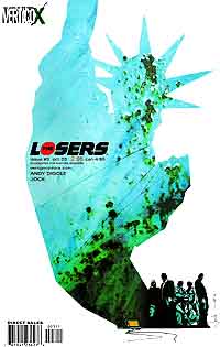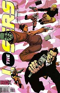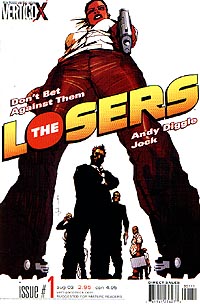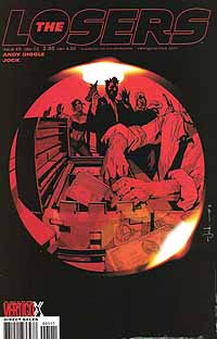 Link zur Ausgabe #1, #2, #3, #4, #5, ab #6 The Losers - Preview (100 Bullets #45) erschienen im August 2003 bei Vertigo Andy Diggle (Autor), Jock (Zeichner), Lee Loughridge (Farben), Clem Robins (Letterer), Zachary Rau (Assistent Editor), Will Dennis (Editor) In dieser acht Seiten langen Einführung über eine Gruppe von Antihelden, die wohl alle mal für Uncle Sam gearbeitet haben, dann aber merken mußten, daß auch die Regierung für eine Menge Scheiß verantwortlich ist und die sich nun einen Privatkrieg mit ihren alten Arbeitgeber leisten, lernen wir nur recht wenig über die Hauptpersonen. Vielleicht war es auch bloß Verrat, der die Ex-Agenten zu dem zwang, was sie nun tun müssen. Zwischendurch scheinen unsere Helden aber auch noch Zeit für ein paar andere Schurken zu haben, so sorgt das weibliche Mitglied der Losers namens Aisha dafür, daß ein paar illegale Einwanderinnen aus dem nahen Osten und Mittelasien nicht sofort nach ihrer Ankunft in Amerika in die Prostitution getrieben werden. So richtig viel kann man jetzt nach dieser kurzen Einführung noch nicht über diese Serie sagen. Die Zeichnungen und der Erzählstil werden aber "100 Bullets"-Leser ersteinmal neugierig gemacht haben. The Losers #1, erschienen im August 2003 bei Vertigo Andy Diggle (Autor), Jock (Zeichner), Lee Loughridge (Farben), Clem Robins (Letterer), Zachary Rau (Assistent Editor), Will Dennis (Editor) Außer den Ereignissen der oben beschriebenen Preview erleben wir mit, wie das Team einen Militärhubschrauber raubt und wie sie mit diesem einen Drogentransport der CIA behindern und die Drogen nach gelungenen Diebstahl vernichten. Damit haben die ehemaligen Mitglieder einer Einheit, die geheime Aufträge für die Regierung erledigt hatte, endgültig der CIA und ihrem ehemaligen Arbeitgebern den Krieg erklärt. Wieso sich diese Gruppe, bei der eine Frau namens Aisha und fünf Typen, die nach dieser ersten Ausgabe noch sehr schwer auseinanderzuhalten sind, und Clay, Roque, Cougar, Jensen und Max heißen, zu diesem Kampf aus dem Untergrund heraus entschlossen haben, wird noch nicht erklärt. Aber ein paar Mitglieder des Teams waren bei einem wirklich schrecklichen Ereignis dabei gewesen, bei dem sie den Glauben an die Richtigkeit ihrer Arbeit verloren haben. Da das Team für ihre früheren Arbeitgeber als tot gilt, können sie nun ungestört operieren. Diese erste Ausgabe bietet einen unterhaltsamen Actionplot, der mit ein paar netten Ideen auftrumpft, auf die so mancher Hollywood-Drehbuchautor neidisch sein kann. Die Zeichnungen von Jock erinnern mich sehr an die eines gewissen Duncan Fegredo, doch das ist nicht schlimm, da beide Zeichner viel von dem verstehen, was sie da tun. Da man die einzelnen Mitglieder des Teams kaum auseinanderhalten kann und bei all der Action die Charaktere und ihre Persönlichkeiten einfach viel zu kurz kommen, sollte Andy Diggle sich noch mal bald etwas Zeit nehmen, um den Leser diese besser vorzustellen. The Losers #2, erschienen im September 2003 bei Vertigo Andy Diggle (Autor), Jock (Zeichner), Lee Loughridge (Farben), Clem Robins (Letterer), Zachary Rau (Assistent Editor), Will Dennis (Editor) Während sich das Team um Clay auf einem Angeltrip vergnügt und auf eine Meldung von Aisha wartet, sind durch die Ereignisse in der letzten Ausgabe einige Personen unruhig geworden und leiten Gegenmaßnahmen ein. So wird ein gewisser Wade damit beauftragt, die Sicherheitslücke zu schließen. Nachdem sich Jensen eine Abfuhr von Aisha abholt, bekommt das Team von Clay ihren nächsten Einsatz erklärt. Diesmal wollen sie durch einen Datenraub die Agency dazu bringen, daß ihre Namen von deren Todesliste gestrichen werden. Leider befinden sich diese Daten auf einem total unabhängigen Rechnersystem, auf das man von außen keinen Zugang erhält. Doch egal wie gut ein System geschützt ist, irgendwie kommt man da schon heran. Jensen glaubt, daß der einfachste Weg über die Versicherungsagentur des Unternehmens führt, da diese alle nötigen Pläne für einen Einbruch auf ihren Computern haben. Jensen ist dann auch derjenige, der die Daten rauben soll. Dies scheint auch erst einfach zu klappen, doch plötzlich richten sich sehr viele Waffen auf ihn. Die Story ist wieder ganz unterhaltsam und von Jock hervorragend aufs Papier gebracht. Trotzdem hätte man die Seiten auch mit etwas mehr Informationen oder Handlung füllen können. Irgendwie versuchen die Autoren der Comicindustrie zur Zeit ihre Story immer auf so viele Ausgaben wie möglich zu verteilen und überlassen die Hauptaufgabe den Zeichnern. Deshalb fühlt man sich als Käufer aber immer mehr dazu verführt, auf eine Sammelausgabe zu warten, um dann die ganze Story von Anfang bis zum Ende lesen zu können. Außerdem könnte man dadurch sogar manchmal noch etwas Geld sparen. The Losers #3, erschienen im Oktober 2003 bei Vertigo Andy Diggle (Autor), Jock (Zeichner), Lee Loughridge (Farben), Clem Robins (Letterer), Zachary Rau (Assistent Editor), Will Dennis (Editor) Mit etwas Schützenhilfe gelingt es Jensen, sich aus den Händen des Sicherheitsdienstes zu befreien. Bei der nachfolgenden Besprechung wird klar, daß ihr Ziel namens "Goliath" von alten Bekannten des Teams bewacht werden. Als das Gespräch auf Afghanistan fällt, wird der Ton ernster, da hier der Wendepunkt zu finden ist, an dem das Team sich dazu entschloß, dem CIA eins auszuwischen. Wegen ihrem noch ungeklärten Status entscheidet man sich dazu, Aisha aus der Sache herauszuhalten. Sie findet das gar nicht gut. Erst scheint auch alles gut zu klappen. Ein paar aufgebrachte Umweltaktivisten, die mit Sprüchen wie "Schwule Wale gegen Rassismus" dem Wachpersonal von Goliath zu schaffen machen, lenken viel Aufmerksamkeit auf sich. Nach und nach schaffen es die Teammitglieder, sich zu ihrem jeweiligen Einsatzort zu begeben. Dann beobachtet aber einer, wie Aisha am Eingang auftaucht. Wird sie das Team verraten? Doch gerade als ziemlich viele Schnellfeuergewehre und andere Wa