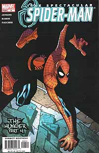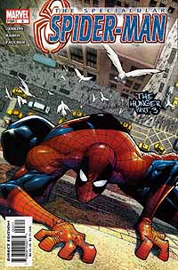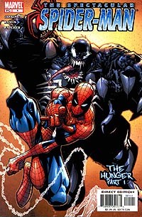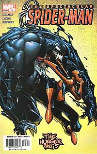 Link zur Ausgabe #2, #3, #4, #5, ab #6 Spectacular Spider-Man #1, erschienen im September 2003 bei Marvel Autor: Paul Jenkins, Zeichner: Humberto Ramos, Tusche: Wayne Faucher, Farben: Studio F, Letterer: Randy Gentile, Editor: John Miesegares, Supervising Editor: Axel Alonso, Editor in Chief: Joe Quesada Eine junge Frau, die am späten Abend auf dem Weg von der Arbeit nach Hause ist, wird von einer unheimlichen Kreatur angegriffen. Peters Nachbarn feiern auf dem Dach ihres Hauses ein Sommerfest und Peter wundert sich mit seinen Freunden gemeinsam über die seltsamen Trinkgewohnheiten seines aus Neuseeland stammenden Nachbarn John. Auch seine anderen Nachbarn sind etwas verschroben, aber nett. Na gut, einer ist nur verschroben. Dafür ist der polnische Pudel, der auf dem Namen Spartacus hört, verschroben und nett. Die Polizei ist am Tatort angekommen und stellt fest, daß sie es wohl mit einem Serientäter zu tun haben. Eddie Brock versucht einem Priester zu erklären, was mit ihm los ist. Der Priester kann aber noch nicht einmal im Ansatz erahnen, was mit Eddie gerade wirklich passiert. Peter, seine Tante und Liz haben sich auf den Weg zu einem Krankenbesuch gemacht. Flash wurde von Norman Osborn für seinen Haß auf Spider-Man als Zielscheibe benutzt. Nun hat er seine geistigen Kräfte verloren und liegt im Koma. Ansonsten sieht er aber trotz der schweren Gesichtsverletzungen einfach blendend aus. Bei der Polizei rätselt man über die Attacken des Serienkillers. Es scheint so, als ob der Killer das Adrenalin aus dem Körpern seiner Opfer saugen könnte. Wie er das macht, darauf gibt es noch keine Antworten. Dafür taufen ihn die Ermittler und die Presse nun "Vampire". Während man sich in Peters Wohngemeinschaft über diesen originellen Namen lustig macht, fragt man sich gleichzeitig, wo Peter denn mal wieder steckt. Peter ist als Spider-Man unterwegs und kann verhindern, daß Venom ein neues Opfer ins Koma schickt. Dafür bekommt Spider-Man aber ein richtiges Problem. Er unterschätzt seinen Gegner und bekommt erst viel zu spät mit, daß Eddie Brock längst die Kontrolle über seinen außerirdischen Partner verloren hat. Für Leser, die mit dieser neuen Serie einen Neuversuch beim Lesen und Sammeln von Peters neuesten Abenteuern machen wollten, wird es mit der Lektüre dieses Heftes nicht ganz einfach. Leider fehlen am Anfang ein paar wichtige Informationen und so kann man nur darüber spekulieren, ob nun Randy und Gloria ein Paar sind und ob sogar Peter eine neue Freundin hat. Dies hätte man schon mit ein paar Worten erklären können. Ansonsten treffen wir auf Venom, der nun ein echter Adrenalinjunkie geworden ist und der Böses mit unseren Helden vor hat. Da Humberto Ramos sich aufs Zeichnen großer Bilder verlegt hat, kommt die Story etwas zu kurz und dies ist ein Punkt, der sich in den nächsten Ausgaben ändern sollte. Eigentlich kann Paul Jenkins ja auch viele Worte für große Bilder finden. Spectacular Spider-Man #2, erschienen im September 2003 bei Marvel Autor: Paul Jenkins, Zeichner: Humberto Ramos, Tusche: Wayne Faucher, Farben: Studio F, Letterer: Randy Gentile, Editor: John Miesegaes, Supervising Editor: Axel Alonso, Editor in Chief: Joe Quesada Venom will sich mit Spider-Man vereinigen. Peter hat natürlich was dagegen. Also wehrt er sich, so gut es geht und mit der Hilfe einer heranrasenden U-Bahn schafft er es, Venom abzuschütteln und ihn erst einmal los zu werden. Detektiv Neil Garrett steht vor dem nächsten Opfer des Adrenalinvampirs. Von seinem Captain bekommt er einen wichtigen Hinweis eines anderen Polizeibeamten übermittelt. Dieser hat herausgefunden, daß jemand Krankenakten von Krebspatienten stiehlt. Genau diese Patienten sucht sich der "Vampir" als Opfer aus. Peter schleicht sich in seine Wohnung und trifft dabei auf seinen sehr seltsamen Nachbarn, der ihn wieder einmal einfach ignoriert. Eddie Brock erhält Besuch von Venom. Venom braucht noch einmal den Zugriff auf Eddie. Als Spider-Man hält Peter zwei Verbrecher auf, die einen Obstladen überfallen. Dabei denkt Peter darüber nach, wie automatisiert er in einer solchen Situation arbeitet und wie sein Körper und sein Geist auf all die kurzen Momente reagieren, die er schon viele Male durchlebt hat. Venom übernimmt die Kontrolle über Eddie Brock. Nur dieser kann genug Adrenalin entwickeln, um seinen Hunger zu stillen. Liz Osborn weiß nicht, was sie mit Flash anstellen soll. Wie soll sie sich als alleinerziehende Mutter und als Konzernchefin auch noch um Flash kümmern? Doch da schaltet sich Tante May ein, denn sie glaubt eine gute Idee zu haben. Spider-Man versucht von Detective Garrett ein paar wichtige Informationen zu bekommen und gleichzeitig bringt er Garrett auf die Spur von Eddie Brock. Nachdem die beiden sich ausgetauscht haben, glaubt Spider-Man plötzlich zu wissen, daß nicht Brock, sondern Venom hinter der Sache steckt und dieser scheint auf der Suche nach einem neuen Träger zu sein. Anscheinend hat Paul Jenkins nach seiner Arbeit an "Witchblade" seinen Gefallen an Polizeiermittlern nicht verloren. Ansonsten wird die eigentlich recht dünne Story alleine von Humberto Ramos Zeichnungen in empfehlenswerte Comickost verwandelt. Spectacular Spider-Man #3, erschienen im Oktober 2003 bei Marvel Autor: Paul Jenkins, Zeichner: Humberto Ramos, Tusche: Wayne Faucher, Farben: Studio F, Letterer: Randy Gentile, Editor: John Miesegaes, Supervising Editor: Axel Alonso, Editor in Chief: Joe Quesada Nachdem Spider-Man Detective Garrett über Eddie Brock informiert hat, kommen diese zu einer Übereinkunft. Garrett gibt einige Informationen an die Presse weiter, damit Eddie Brock aufgescheucht wird. Garrett setzt Spider-Man eine Zwei-Tage-Frist, danach kümmert er sich alleine um den Fall. Peter bekommt einen neuen Nachbarn. Tante May hatte einen Einfall, damit Flash die Zuwendung bekommt, die er nun braucht. Zusammen mit Flash zieht auch eine Krankenschwester namens Helga in das Wohnhaus, in dem auc