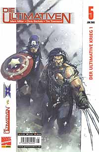 Die Ultimativen #4, erschienen im April 2003 bei Panini Autor: Mark Millar, Zeichner: Bryan Hitch Nachdem der Hulk einige hundert Bürger New Yorks getötet hat, beruhigt sich die Lage in New York wieder etwas. Doch nicht nur der Hulk und damit Bruce Banner bereiten den anderen Mitgliedern der Ultimativen Sorgen. Anscheinend hat Hank Pym versucht, seine Frau zu töten und diese liegt nun in einem künstlichen Koma. Captain America macht sich danach auf die Suche nach dem untergetauchten Hank Pym. Währenddessen macht das Schattenteam der Ultimativen, also eine Eingreiftruppe, von deren Existenz bisher nicht einmal das Hauptteam etwas weiß, unter Führung von Black Widow und Hawkeye Jagd auf eine Gruppe von Außerirdischen. Nach der Lektüre der ersten Abenteuer der Ultimativen in dem Sammelband "Best of Marvel #4" mußte ich einfach wissen, wie es in dieser Serie weiter geht. Also ging ich zum Comichändler meines Vertrauens (Gruß an Jörg vom Comic-Zentrum Oberhausen) und besorgte mir die nachfolgende Ausgabe. Nach deren Lektüre bin ich auch froh, daß ich nicht bis zum Erscheinen eines weiteren Sammelbandes gewartet habe. Dieses Team und ihre Handlungen als Menschen und Helden zu verfolgen, ist einfach spannend und dafür muß man Mark Millar loben. Obwohl sich auch Millar dann im zweiten Teil dieser Ausgabe zu einem ziemlichen Quatsch hinreißen läßt, indem er behauptet, daß Außerirdische für den Zweiten Weltkrieg mitverantwortlich wären. Dies wäre nicht nötig gewesen. Dafür bietet der zweite Teil aber eine atemberaubende Actionsequenz und hierfür muß man Bryan Hitch dann danken. In den nächsten zwei Ausgaben geben wir der Haupthandlung dann eine Pause, weil eine Miniserie namens "Ultimate War" dort abgedruckt wird, der den ersten Crossover zwischen den X-Men und den Ultimates darstellt. Hier freue ich mich aber auf atemberaubende Zeichnungen eines anderen Ausnahmekünstlers namens Chris Bachelo. Die Ultimativen #5, erschienen im Junil 2003 bei Panini Autor: Mark Millar, Zeichner: Chris Bachalo Auf der New Yorker Brooklyn Bridge wird ein terroristischer Anschlag verübt. Hinter diesem steckt die Bruderschaft der Mutanten und ihr Anführer Magneto stellt den Regierenden unserer Welt ein Ultimatum. Sie haben ein halbes Jahr Zeit, um die Erde unter die Herrschaft der Mutanten zu stellen. Die Menschen, die danach von den neuen Herrschern als überlebensfähig eingestuft werden, bekommen eine Chance als Sklaven. Der Rest wird sterben müssen. Natürlich werden daraufhin sofort die Ultimativen von allen bisherigen Aufgaben befreit. Nun sollen sie Magneto und seine Bruderschaft stoppen. Ein erster Schlag gegen zahlreiche Mitglieder der Bruderschaft wird auch ein Erfolg und nur Rouge schafft es zu entkommen. Danach erhalten die Ultimativen ein Hilfsangebot von Magnetos Kindern Quicksilver und Scarlet Witch, die dabei helfen wollen, ihren wahnsinniger Vater aufzuhalten. Es folgt eine Schreckensnachricht. Angeblich haben sich Professor Xavier und seine X-Men Magnetos Sache angeschlossen. Sehr gradlinig erzählt Mark Millar seine spannende Geschichte, die von Chris Bachalo in der von ihm gewohnter Qualität durch tolle Bilder verfeinert wird. Anscheinend darf Bachalo aber hier nicht ganz so verspielte Seitengestaltungen abliefern und so wirken die Zeichnungen so, als ob ein Kunstregisseur plötzlich einen Mainstreamfilm mit Millionenbudget abliefert. Die Zutaten stimmen bei diesem Crossover, aber irgendwie fehlt ein wenig das Herzblut. Die Ultimativen #6, erschienen im August 2003 bei Panini Autor: Mark Millar, Zeichner: Chris Bachalo Die Jagd auf die X-Men ist eröffnet und diejenigen, die Jagd auf sie machen, heißen die Ultimativen. Diese haben nach dem Angriff auf ihr Hauptquartier durch Magneto aber auch so manches zu tun. Der Hulk ist entkommen und niemand weiß, wo er steckt. Aber die Jagd ist wichtiger. Professor Xavier versucht zu retten, was zu retten ist und schlägt Magneto zum Schein eine Zusammenarbeit vor. Doch Magneto fällt auf so etwas nicht herein und er läßt Nick Fury und dessen Heldentruppe wichtige Informationen über den Aufenthaltsort der X-Men zukommen. Es kommt zu einem heftigen Schlagabtausch zwischen den X-Men und den Ultimativen. Die X-Men sind nun endgültig vogelfrei und Professor Xavier steht vor einer folgenschweren Entscheidung. Dem Autor dieses Crossovers gelingt es, Neugierde über das weitere Schicksal der Mutanten zu wecken und so Leser wie mich dazu zu bringen, doch noch mal den "Ultimativen X-Men" eine neue Chance zu geben.Von deren ersten Ausgabe war ich nämlich damals wenig begeistert. Die Ultimativen wurden bloß als schlagkräftige Soldaten präsentiert, die jeden Befehl Nick Furys einfach sofort ausführen. |