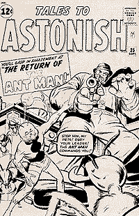 Making Marvel History (3) Plot: Stan Lee, Autor: Larry Lieber, Zeichner: Jack Kirby Henry Pym ist ein genialer Wissenschaftler, der mit seinen Ideen bei den monatlichen Treffen der Wissenschaftlichen Gesellschaft nicht gerade auf begeisterte Zuhörer trifft. Es scheint so, als hielten ihn seine Kollegen für einen Träumer, dessen Bestrebungen sich niemals realisieren lassen würden. Doch Pym gibt nicht auf. Und scheinbar hat er Erfolg. Als er einen Stuhl schrumpfen und danach wieder wachsen läßt, sieht er sich am Ziel seiner Forschungen. Er hat ein Serum erfunden, daß jeden Gegenstand auf eine Minimalgröße verkleinert und sich mit der Hilfe eines Wachstumsserum wieder in die Ursprungsgröße zurück verwandeln läßt. Schon träumt Henry Pym von den zahlreichen Anwendungsmöglichkeiten im Transportwesen und für militärische Zwecke. Doch eines muß noch getan werden und so setzt er sich selbst der Wirkung des Serums aus. Leider hat er die Stärke des Serums schwer unterschätzt und so schrumpft er auf Insektengröße und hat keine Chance mehr, an das Wachstumsserum zu gelangen. Im Panik rennt er aus dem Haus und macht durch seine Rufe, die kein Mensch mehr zu hören vermag, ein paar Ameisen auf sich aufmerksam. Durch diese aufgeschreckt, rennt der Wissenschaftler direkt in einen Ameisenhügel hinein, aus dem er nur mit sehr viel Glück und der Hilfe einer ihm freundlich gesinnten Ameise wieder herauskommt. Ein paar Ameisen verfolgen ihn aber weiter und nur mit der Hilfe einer weiteren ihm freundlich gesinnten Ameise schafft er es am Ende, an das Wachstumsserum zu gelangen. Sofort danach beschließt Henry Pym, daß seine Entdeckung noch nicht dazu bereit ist, der Menschheit zur Verfügung zu stehen, da die Gefahren viel zu groß sind und so schüttet er die Reste seines Schrumpf- und Wachstumsserums in den Ausguß. Trotzdem ist die Geschichte des Henry Pym damit noch lange nicht zu Ende erzählt. Was Stan Lees Bruder Larry Lieber (nach einer Idee seines Bruders) sich hier zusammengeschrieben hat, kann man nur als simple Gruselgeschichte für Kinder und Jugendliche bezeichnen, denen man 1962 noch damit einen Schreck einjagen konnte, daß man ihnen eine Geschichte erzählt, in der sich ein Mann mit Ameisen auseinanderzusetzen muß, nachdem er selbst auf Insektengröße geschrumpft ist. Irgendwie fühlt man sich auch gleich an Jack Arnolds Filmklassiker "Die unglaubliche Geschichte des Mister C." erinnert. Dann ist da noch die Sache mit den "bösen" Ameisen, die Henry Pym jagen und den "guten" Ameisen, die ihm immer zur rechten Zeit helfen. Warum die einen so handeln und die anderen anders, wird überhaupt nicht hinterfragt. Vielleicht wäre das ja auch zuviel verlangt von einer Geschichte, die gerade mal sieben Seiten lang ist, von denen auch noch die komplette erste Seite für ein einziges reißerisches Bild herhalten muß. Scheinbar hat diese Story aber vielen Leser gefallen und so wurde aus dem glücklosen Wissenschaftler im September des gleichen Jahres noch ein neuer Superheld gemacht, der Jahre später sogar den Avengers beitreten würde. Making Marvel History (11) Henry Pym ist von den Ereignissen, die mit dem Test seines Schrumpfserums zu tun hatten, nachhaltig beeindruckt gewesen. So stellte er das Serum doch wieder her und er begann mit der Erforschung des Verhaltens der Ameisen. Er entwickelte sogar einen Helm, mit dem es ihm gelingen könnte, tatsächlich mit den Insekten zu kommunizieren. Auch ein Schutzanzug wurde von ihm angefertigt, der ihn vor den Attacken der Insekten schützen sollte. Es geschah, daß Dr. Pym einen Auftrag von der Regierung bekam und er mit der Hilfe von vier Assistenten ein Mittel gegen Radioaktivität entwickeln sollte. Natürlich wurden aber die Gegner der amerikanischen Regierung darauf aufmerksam und so wurden Agenten ausgesendet, die dem Doktor, die Formel für das Serum entreißen sollten. Als die Agenten das Labor und alle Insassen in ihre Gewalt gebracht hatten, weigerte sich Pym aber, ihnen das Geheimnis zu verraten. So mußten sich die Agenten selbst im Labor auf die Suche gehen. Sie schlossen Henry Pym in sein Büro ein, was ihm die Gelegenheit gab, sich zu verkleinern und in den in der Nähe des Labors gelegenen Ameisenhaufen zu gelangen. Dort mußte er feststellen, daß er, obwohl er nun auf Ameisengröße geschrumpft war, immer noch die Stärke eines normalgroßen Mannes hatte. Dies gab ihm gegen die ersten Angriffe einiger übelgelaunten Ameisen einen riesigen Vorteil. Als er es auch noch mit einem Käfer, der die Ameisenkolonie bedrohte, erfolgreich aufgenommen hatte, waren die Ameisen auch bereit, ihm zu folgen. Mit Hilfe seiner kleinen Größe und seiner kleinen Helfer gelang es ihm dann, seine Assistenten von ihren Fesseln zu befreien und die Agenten mit Hilfe der Ameisen auszuschalten. Niemand der Anwesenden wußten aber, wer für diese außergewöhnliche Wendung verantwortlich war und dies war ganz im Sinne des Doktors, der sich am Ende fragte, ob er jemals wieder den Helden spielen wird. Diese Story ist wirklich sehr schön von Kirby gezeichnet und so kann diese kurze Heldengeschichten trotz stereotypen Feindbild (es sind natürlich Kommunisten, die ihre Agenten ins Labor schicken) ganz nett unterhalten. Making Marvel History (16) In diesem Abenteuer wird der russische Superagent Comrade X ausgesandt, um das Geheimnis von Ant-Man zu lüften. Die Russen wollen mit Hilfe der Kraft des Ant-Mans ganze Armeen schrumpfen lassen, um so ihre Gegner heimtückisch zu überfallen. Doch auch Comrade X muß am Ende der Geschichte erkennen, daß auch sein Plan fehlschlägt, da der Held nicht so einfach auf die Maskierungen seines Gegners hereinfällt. Denn in Wirklichkeit ist der Agent eine Frau. Warum Ant-Man allerdings erst anscheinend absichtlich in die Falle hineinläuft, nur um sich durch einen waghalsigen Plan mit Hilfe seiner Armeisen aus dieser zu befreien, bleibt ein Rätsel. Der einfache und banale Plot wird wieder durch die Zeic