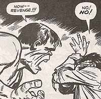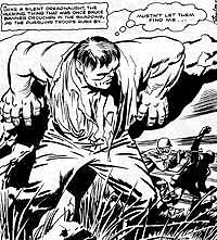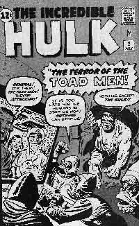 sich auch nicht mehr für jedes Bild soviel Zeit lassen konnte. Zu Beginn dieser Geschichte versetzt der Hulk eine Kleinstadt in Angst und Schrecken. Alle Bewohner retten sich vor dem grünen Giganten in ihre Wohnungen. Bevor der Hulk wirklich gefährlich werden kann, wird er von Rick Jones beruhigt. Gleichzeitig erreicht ein außerirdisches Raumschiff die Erde und die Besatzung des Schiffes feuert einen Magnetstrahl aus purer Energie auf die Erde. Mit diesem Strahl machen sich die Außerirdischen auf die Suche nach dem klügsten Hirn der Menschheit. Als der Strahl sein Ziel erreicht hat, wird auch gleich ein Erkundungsteam ausgeschickt, welches den Besitzer dieses Hirns ausfindig machen und gefangen nehmen soll. Von diesen Vorgängen wissen Rick Jones und Dr. Bruce Banner nichts, als sie sich zu einer angeblichen Forschungsexpedition in die Wildnis zurückziehen. Als sie deshalb die Militärbasis verlassen wollen, werden sie noch kurz von General Ross und seiner Tochter Betty angesprochen. Betty gibt Bruce zu bedenken, daß es doch sehr gefährlich sein könnte, sich in die Wildnis hinaus zu wagen, da doch der Hulk noch nicht gefaßt wurde. Ihr Vater glaubt aber, daß der Doktor, den er immer noch für einen ausgemachten Feigling hält, sich schon rechtzeitig irgendwo verstecken wird, falls er irgendeiner Gefahr begegnet. Danach können Rick und Bruce ungehindert und ungesehen ihren eigentlichen Plänen nachgehen. Bruce hat eine unterirdische Höhle entdeckt und diese so präpariert, daß er sich in diese immer begeben kann, um zum Hulk zu werden. Rick wird dafür sorgen, daß er aus seinem selbstgewählten Gefängnis nicht heraus kann. Damit glaubt Bruce dafür gesorgt zu haben, daß der Hulk niemanden mehr gefährlich werden kann. Plötzlich werden sie, während sie sich noch in der Höhle befinden, angegriffen und von den grausigen Krötenmenschen (Toad Men) gefangengenommen und auf deren Schiff gebracht. Dort stellt sich schnell heraus, daß die Außerirdischen für Rick keinerlei Verwendung haben und so schicken sie diesen wieder auf die Erde zurück. Als sie sich wieder Bruce Banner zuwenden wollen, hat dieser sich gerade in den Hulk verwandelt. Der Hulk ist gar nicht gut auf die Angreifer zu sprechen und beginnt diese sogar mit ihren eigenen Strahlenpistolen zu bekämpfen. Fasziniert ist der Hulk von der starken Bewaffnung des Raumschiffes, damit glaubt er nun Waffen in seinem Besitz zu haben, um die Menschheit zu vernichten. Nun reagiert aber General Ross, da das außerirdische Schiff mittlerweile auch auf der Erde entdeckt wurde und er läßt es mit zahlreichen Raketen beschießen. Verzweifelt muß Rick Jones dabei zuschauen, wie das Raumschiff auf die Erde stürzt. Als die Soldaten das Wrack erreicht haben, sind sie verwundert darüber, daß sich Bruce Banner an Bord des Schiffes aufhält. Sofort wird dieser wegen Hochverrats festgenommen und in eine Zelle gesteckt. Die Außerirdischen, die an Bord waren, konnten unbemerkt einen Weg aus dem Wrack finden und sie reagieren auf ihren Absturz sofort und rufen eine Invasionsarmee herbei. Diese eilt sofort herbei und der Anführer der Krötenmenschen stellt den Erdregierungen ein Ultimatum. Entweder ergeben sich diese den Außerirdischen oder die Angreifer aus dem All lassen ihre Magnetkräfte auf den Mond einwirken, damit dieser aus seiner natürlichen Umlaufbahn um die Erde gebracht wird. Dies hätte zur Folge, daß die Erde von Erdbeben und Sturmfluten heimgesucht werden würde. Ein wenig verschieben die Außerirdischen den Mond aus seiner Bahn und schon bekommen die Erdbewohner die Folgen zu spüren. Plötzlich steigt der Meeresspiegel an und kleine Erdbeben erschüttern die Erde. Als es anfängt zu dämmern, verwandelt sich der Doktor in seiner Zelle wieder in den Hulk. Er bricht sofort aus und nimmt sich wieder einmal Betty Ross als Geisel. Mit Betty zieht sich der Hulk in das Labor von Bruce Banner zurück. Bevor der Hulk Betty etwas antun kann, taucht Rick auf, der wieder versucht, den Hulk zu beruhigen. Dieser will sich aber nicht beruhigen und wird nur durch ein plötzliches Erdbeben davon abgehalten, Rick etwas anzutun. Als Bruce aus seiner Ohnmacht erwacht, muß er einen Weg finden, die Eroberungspläne der Krötenmenschen aufzuhalten. Da er nicht nur eine Gammabombe entwickelt hat, sondern auch eine Gammakanone, beschließt er einfach, diese Waffe gegen den Feind einzusetzen. Bevor ihn die Armee, die ihn ja immer noch für einen Verräter hält, aufhalten kann, setzt er diesen Plan in die Tat um, und hat damit großen Erfolg. Die feindliche Flotte flieht vor den Strahlen und die Gefahr durch die Außerirdischen ist ersteinmal gebannt. Niemand weiß aber, daß sie dies Dr. Banner zu verdanken haben. Fürs erste hat sich Bruce Banner in sein selbstgewähltes unterirdisches Gefängnis zurückgezogen, in dem er von Rick immer dann eingesperrt wird, wenn er sich in den Hulk verwandelt. Nachdem die Skrulls ja schon in der zweiten Ausgabe der "Fantastischen Vier" für Aufsehen sorgten, bekommt es nun auch der Hulk und damit auch Bruce Banner mit Außerirdischen zu tun. Da diese den Skrulls auch noch verdammt ähnlich sehen, ist ihr Auftauchen ersteinmal nicht sehr originell. Da sie aber über sehr gefährliche Magnet-Waffen verfügen, können sie wenigstens der Erdbevölkerung einen Schreck einjagen. Warum aber, nachdem der Mond ersteinmal aus der Umlaufbahn geschoben wurde, sofort mit dem Verschwinden der feindlichen Flotte wieder alles in Ordnung auf Erden zu sein scheint, bleibt etwas unerklärlich. Auch daß Bruce Banner eine Waffe besitzt (von deren Existenz der Leser bis dahin gar nichts wußte), die den Außerirdischen natürlich Ärger bereiten wird, ist als Lösung ziemlich simpel. So sind es eigentlich nur die vielen Jack Kirby Bilder, die den Leser auch heute noch beeindrucken können und daß der Hulk in dieser Ausgabe etwas wilder aussieht als in der ersten Ausgabe ist weiter nicht tragisch, weil dieses wildere Au
