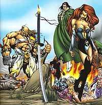 The First #1, erschienen im Dezember 2002 bei CrossGen Deutschland Autorin: Barbara Kesel, Zeichner: Bart Sears Seahn von den Ersten ist an einen Ort, von dem die Legende erzählt, gekommen. Geführt wird er von dem mysteriösen Enson und er findet, was er sucht. Auch Persha ist von diesem Schritt Seahns unterrichtet und sie sieht auch, wie sich die Jäger für ihre Jagd rüsten. Danach wendet sich die Erzählung einem anderen Ort zu. Es ist der Vorabend zu einer großen Schlacht. Der Kriegsherr Todosi wendet sich in seiner Not an die Götter und er erhält ein Zeichen, das ihn am nächsten Tag die Kraft gibt, sich der Übermacht seiner Gegner zu stellen. Trotzdem scheint diese Schlacht am Ende zu Ungunsten Todosis zu verlaufen und wieder wendet er sich an die Götter und diese erscheinen. Viel wird nicht erzählt in dieser ersten Ausgabe einer Serie, die sich mit den wohl mächtigsten Wesen des CrossGen-Universums beschäftigt und so bekommt man wohl viele Antworten erst in den nächsten Ausgaben. Von der kreativen Seite her gibt es aber ganz klar eines zu vermelden. Bart Sears findet künstlerisch endlich zu alter Stärke zurück und kann mit ziemlich bombastischen Szenen glänzen. The First #2, erschienen im Januar 2003 bei CrossGen Deutschland Autorin: Barbara Kesel, Zeichner: Bart Sears Einer der Ersten und Todosis, der Herr über die Armee von Nayado, sind gefallen. Doch die Macht des Gezeichneten ist auf Todosis jüngeren Bruder, einen Priester, übergegangen und nun hält er auch noch durch die mächtige Waffe von Altwaals etwas in seinen Händen, das noch weitere Götter das unsterbliche Leben nehmen könnte. Während die Ersten in ihre Heimat zurückkehren, bleibt der Barde unentdeckt in Todosis Armee zurück. Er hat den Auftrag bekommen, den neuen Gezeichneten zu beobachten. Die Ersten sind über das Fehlverhalten der Nachgeborenen schockiert und Trenin, der Jäger, nimmt Seahn das Recht, beim Rat anwesend zu sein. Seahn zieht sich daraufhin mit vier weiteren Nachgeborenen zurück. Überall machen sich die Ersten Gedanken über die Macht der Gezeichneten. Sie wissen nun, daß es Wesen gibt, die ihnen gefährlich werden könnten. Die zwei getrennt voneinander agierenden Häuser der Ersten sehen sich plötzlich neuen Bedingungen gegenüber und vielleicht ist sogar an der Zeit, daß sich die beiden Häuser wiedervereinigen. Von der bloßen Anzahl der hier agierenden Götter des CrossGen-Universums wird man als Leser erschlagen und man kommt noch gar nicht dazu, all die hier Agierenden richtig kennenzulernen oder wenigstens sie richtig beim Namen zu nennen. Erst die nächsten Ausgaben werden wohl zeigen, wer hier wer ist und was dieser denn eigentlich vorhat. Es geht aber wohl um den Konflikt zwischen den Generationen und den der zwei seit langer Zeit getrennt agierenden Häusern. Außerdem ist da noch eine Erste, die sich im Hintergrund aufhält und wohl ganz eigene Pläne verfolgt. The First #3, erschienen im Februar 2003 bei CrossGen Deutschland Autorin: Barbara Kesel, Zeichner: Bart Sears Aus verschiedenen Gründen wollen Seahn und Persha, dass sich die beiden Häuser der Ersten wieder vereinen. Seahn wird aber erst einmal von den Anführern seines Hauses ermahnt, weil er angeblich dafür verantwortlich ist, dass Altwaals Waffe auf der Welt des Kriegsherrn Todosi zurückgelassen werden musste und Persha wird von ihrer Mutter Ingra sogar mit einem Zauberbann belegt, der es ihr unmöglich macht, ihren Wunsch von der Vereinigung der beiden Häuser auch nur auszusprechen. Getrennt voneinander suchen beide nach Antworten und diese finden sie bei unterschiedlichen Personen. Seahn erfährt von Raamia, Altwaals ehemaliger Geliebten, wie es zu Altwaals Ende und der Trennung der Häuser gekommen ist. Das Gleiche erfährt Persha vom Orium, dem mysteriösen Orakel. Am Ende der jeweiligen Erzählungen erwartet die Götter zwar keine große Überraschung, dafür wird den Lesern dieses Comics klar, warum das Zeichen, mit dem die Gezeichneten ihre großen Mächte erhalten haben, so aussieht, wie es aussieht. Und wir erfahren, wie Trenin seinen Beinamen „der Jäger" erhalten hat. Ansonsten ist diese Legende von Zwietracht und Tod etwas zu einfach gestrickt und etwas weniger als 96 Seiten hätten hierfür verbraucht werden müssen. Ab und an gelingen Bart Sears aber ganz nette Zeichnungen. |