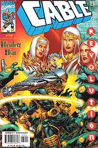 Cable #79, erschienen im Mai 2000 bei Marvel Comics Autor: Robert Weinberg, Zeichner: Michael Ryan, Tusche: Andrew Pepoy, Farben: Gloria Vasquez, Letterer: Richard Starkings & Comicraft's Saida Tenofonte, Editor: Mark Powers, Editor in Chief: Mark Powers Cable läuft in Gedanken versunken durch die Straßen von New York. Er denkt an seinen Kampf gegen Apokalypse. Dies war der Konflikt, der sein bisheriges Leben bestimmt hat. Ein Kampf, der nun unter schweren Opfer zu Ende gegangen ist. Er hat den Platz von Scott Summers eingenommen und ist jetzt ein Teil der X-Men. Doch was kommt als nächstes? Dann tauchen plötzlich drei Hexen auf und diese stellen ihm drei Aufgaben. Erst zeigen sie ihm, wie ein liebevoller Vater zum Opfer eines Dämonen wird. Cable muß nun diesen Dämonen stoppen, bevor dieser im Madison Square Garden ein Blutbad anrichten kann. Dies gelingt ihm, doch den Vater kann er nicht vor der Zerstörungskraft des Dämons mit Namen Aentaros retten. Ein Team von Männern bereitet indessen den Auftritt von Dr. Randall Shire vor. Bei diesen Vorbereitungen wird von Versklavung und Weltherrschaft geredet. Und auch diese haben Angst vor dem Dämon mit Namen Aentaros. Cable zieht weiter durch die Stadt. Er wird dabei beobachtet. Ein Köder wird ausgelegt und Cable folgt diesem in einen Raum voller mechanischer Kampfmaschinen. Cable schlägt sich durch diese hindurch und hin zu dem, der diese befehligt. Als er diesen schon gepackt hat, verschwindet er samt allen Robotern. In einer Wüste ist ein Forscher am Ziel seiner Träume angelangt, er glaubt vor den Toren von Atlantis zu stehen. In einem S.H.I.E.L.D. Hospital erwacht ein alter Gegner von Cable mit Namen Blockade aus seinem Koma auf. Nun steckt in diesem der Dämon mit Namen Aentraos. Erst kümmert sich Aentaros um Cable, danach um Shire. Cable ist genug durch die Stadt gewandert und kommt an seinem neuen Unterschlupf an. Als er die Tür öffnet, wird er von einem hellen Licht begrüßt und er findet sich plötzlich in einem märchenhaften Land wieder. Verschiedene Handlungsstränge werden hier ganz nett miteinander verbunden. Das Ganze wird nur durch die simplen Zeichnungen von Michael Ryan auf ein ziemlich durchschnittliches Niveau heruntergeholt. |