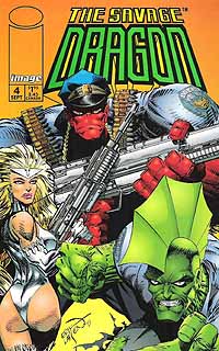 Link zur Miniserie, weiter mit Ausgabe #2, #3, #4, #5 The Savage Dragon #1, erschienen im Juni 1993 bei Image Autor/Zeichner: Erik Larsen, Letterer: Chris Eliopoulos, Farben: Steve Orliff, Reuben Rude, Xan Micka, Editor: Jannie Wong Dragon steht Shrew gegenüber. Shrew sieht wie eine menschliche Ratte aus und mit seinen scharfen Krallen schlitzt er seine Opfer auf. Shrew ist der neuste von vielen Gegnern, mit denen es Dragon zur Zeit zu tun hat. Dragon muß aber feststellen, daß Shrew ihm derzeit an Form und Willen überlegen ist. So muß Dragon Shrew entkommen lassen. Lt. Darling kann Dragon auch nicht aufmuntern. Auch dessen Versprechen, daß er ihm Verstärkung besorgen wird, die wie Dragon über Superkräfte verfügt, heitert ihn wenig auf. Dragon muß mit dem Verlust seiner Freundin fertig werden. Sie wurde in seinem Apartment getötet. Debbie Harris ist tot (dies könnte ein Ereignis sein, daß den Lesern der Miniserie vorenthalten wurde, welches aber vielleicht in der Tradepaperback-Ausgabe hinzugefügt wurde). Dazu kommt noch, daß ständig eine Frau im Präsidium anruft und behaupte, daß Dragon ihr verschollener Sohn Rodney wäre. Lt. Frank Darling steckt auch in einer ungewollt üblen Situation. Um Dragon zum Dienst bei der Polizei zu überreden, arrangierte er einen Überfall auf das Lagerhaus seines Cousin Fred. Nun ist zwar Dragon bei der Polizei, Fred ist aber tot und der Kopf des berüchtigten Vicious Circle, Skullface, hat mit seinem Wissen über den von Darling inszenierten Vorfall Frank in der Hand. Und so schickt nun Darling Dragon zwar gegen so manchen Superfreak in die Schlacht, doch von den Drahtziehern muß er Dragon fernhalten. Irgendwo steht ein Haus. Schreie dringen aus dem Keller heraus in die Küche, in der zwei tote Menschen liegen. Dragon sucht Frieden bei einem Glas Bier. Der Frieden wird durch einen Kerl namens Johnny Nitro gestört und so endet alles in einer riesigen Kneipenschlägerei. Nun ist es seine Kollegin Officer Wilde, die versucht, die Laune von Dragon zu verbessern. Sie schlägt vor, daß sich Dragon seiner Trauer stellt und sich endlich dazu überwindet, das Grab von Debbie aufzusuchen. Am Grab angekommen, wird Dragon von Debbies Mutter verscheucht. Wilde soll ihm danach mit weiteren guten Ratschlägen in Ruhe lassen. Nun stellt Dragon sich erneut Shrew. Mit zwei Motorsägen bewaffnet geht er auf diesen los. Am Ende sind es aber wieder seine bloßen Fäuste und seine Wut, die es schaffen, Shrew zu erledigen. Danach bekommt Dragon einen neuen Auftrag zugewiesen. In den Tunneln unter der Stadt sollen zwei obdachlose Superkräfteträger gesichtet worden sein. Murrend geht Dragon der Sache nach. Er trifft auf ein riesiges Kraftpaket mit Namen Barbarien und einen redseligen Teenie mit Namen Ricochet. Barbarien und Dragon lassen es auf einen Kräftevergleich ankommen. Fast schon wieder zu spät erkennt Dragon, daß ihm diese zwei eigentlich gar nichts wollen. Die beiden sind höflich und wollen nur in Frieden leben und suchen dazu noch einen Job. Das läßt Dragon auf eine Idee kommen. Vielleicht hat er ja nun endlich seine Verstärkung gefunden. Diese Verstärkung sollte ja eigentlich nur dazu da sein, daß das Dragonuniversum eine weitere Heftserie hinzubekommt. Diese hieß dann "Freakforce" und brachte es auf 18 Ausgaben. Ansonsten bleibt Dragon auf einem von den Zeichnungen her sehr guten, doch recht blutig gehaltenen Niveau. Das Blut veranlaßt mich auch, dieses Comic nur Lesern ab 16 Jahren oder älter zu empfehlen. Die Story ist zwar recht dünn, dafür aber unglaublich kurzweilig. Actionkost für zwischendurch mit teilweisen spektakulären Bildern. The Savage Dragon #2, erschienen im Juli 1993 bei Image Autor/Zeichner: Erik Larsen, Letterer: Chris Eliopoulos, Farben: Steve Orliff, Reuben Rude Editor: Jannie Wong Da Dragon nach New York beordert worden ist, bekommt die Polizei von Chicago nun Verstärkung durch die Superheldin Dart. In New York schlägt sich Dragon erst gegen die Teenage Mutant Ninja Turtles herum, da diese Dragon für die steinerne Riesengargyle halten, die New York seit kurzem terrorisiert. Nachdem dieses Mißverständnis aufgeklärt wurde, gehen die vier gemeinsam und erfolgreich auf Gargylenjagd. Als sie vor den steinernen Resten des Gegners stehen, fragen sich die Turtles allerdings, ob dies auch der wahre Gegner war oder ob da nicht irgend jemand für diese Gargylenbelebung verantwortlich war. Eine seltsam gekleidete Frau, die dafür verantwortlich sein könnte, macht sich unbemerkt davon. Dragon sieht seinen Auftrag als erledigt an und kehrt nach Chicago zurück. Irgendwo macht ein Junge einen grausigen Fund. Nett gezeichnete Story, die aber viel zu simpel ist. Etwas mehr Handlung sollte es schon geben. Außerdem gibt es in dieser Ausgabe noch zwei kurze Geschichten um andere Helden aus dem Dragonuniversum. Auf diese gehe ich hier aber nicht weiter ein. The Savage Dragon #3, erschienen im August 1993 bei Image Autor/Zeichner: Erik Larsen, Letterer: Chris Eliopoulos, Farben: Steve Orliff, Reuben Rude, Xan Micka, Editor: Jannie Wong Allen bekannten Schwerverbrecher gelingt der Ausbruch aus dem Gefängnis. Dart und Star stellen sich zwar dem Mob so gut es geht entgegen, müssen sich aber letzten Endes von dem totgeglaubten Mighty Man aus der Gefahrenzone bringen lassen. Dragon kehrt von seinem Auftrag aus New York zurück und sieht sich einer Vielzahl von Problemen gegenüber. Es scheint wirklich so zu sein, daß Lt. Darling ihn aus dem Weg haben wollte. Warum macht er sowas? Darling erhält einen Dankanruf vom Vicious Circle. Wieder auf dem neuesten Stand gebracht, weiß Dragon, wo er steht. Immer noch bekommt das Polizeirevier Anrufe von einer Frau, die behauptet, die Mutter von Dragon zu sein. Der Killer Skrew soll angeblich von einem Parasiten zu seinen Handlungen getrieben worden sein, so daß seine Anwältin gute Chancen hat, ihn frei zu bekommen. Außerdem wurde herausgefunden, daß der Mörder von Debbie Harris 