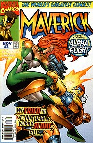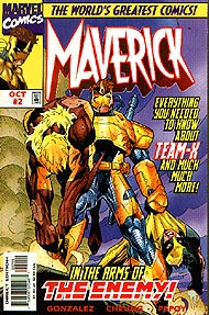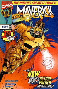Link zur Ausgabe #1,#2,#3,#4,#5,#6(fortlaufende Serie) Maverick - In the Shadow of Death, erschienen im Januar 1997 bei Marvel Comics Autor: Larry Hama, Art: Wilfred Santiago, Farben: Marie Javins, Letterer: Chris Eliopoulos, Editor: Kelly Corvese, Editor in Chief: Bob Harras Maverick träumt von einem Auftrag, der ihn zusammen mit Logan und Creed nach Berlin führte. Dort tötete Creed gnadenlos eine Frau und für Omega Red war es der Anfang seiner Jagd nach dem Carbonadium Synthesizer. Im Traum endet alles anders. Dann erwacht Maverick. Er ist nicht alleine im Zimmer. Eine Frau ist bei ihm und sie bittet um seine Hilfe. Die junge Frau, ein russisches Psi-Talent mit Namen Elena Ivanovna, will sich an Creed rächen. Creed tötete bei einem anderen Einsatz Elenas Mutter (die Ehefrau des russischen Super-Astronauten Epsilon Red), als sie noch mit Elena schwanger war. Seitdem wird Elena von Rache getrieben. Im Gegenzug wird sie Maverick gegen seinen Verfolger behilflich sein. Und auf Maverick, dessen Körper vom Legacy Virus stark gezeichnet ist, hat es niemand anderes abgesehen als Omega Red. Von nun an handelt die Geschichte nur noch davon, wie Omega Red Maverick und Elena verfolgt und wie die beiden noch zusätzliche Hilfe durch einen alten Partner von Maverick bekommen. Und wenn man sich gerade auf der Flucht befindet, kann einen auch niemand besser helfen, als ein Experte auf dem Gebiet des spurlosen Verschwindens und da ist John Wraith der Richtige. Er kann sich sprichwörtlich in Luft auflösen. Die Jagd führt über ein kanadisches Militärgelände zu einem geheimen Forschungskomplex des Weapon X-Projektes. Am Ende scheint es so, daß sie Omega Red wirklich los geworden sind und Elena beschließt, Maverick bei seinem Kampf gegen die tödliche Krankheit beizustehen. Die Story, getragen von Elementen aus älteren X-Abenteuern, bringt außer den neuen Gesichtern mit Namen Elena Ivanovna und John Wraith eigentlich nichts Neues für den Lesern. Dafür sind aber die Zeichnungen mal wieder sehr gut anzuschauen. Wilfred Santiago zeichnet fast so gut wie Mark Texeira und diese Art von Zeichnungen mag ich ja wirklich gerne. Die Bilder sind einfach so schön düster. Maverick #1, erschienen im September 1997 bei Marvel Comics Autor: Jorge Gonzalez, Zeichner: Jim Cheung, Tusche: Andrew Pepoy, Letterer: Chris Eliopoulos & Virtual Calligraphy, Farben: Kevin Somes, Editor: Kelly Corvese, Editor in Chief: Bob Harras Die für den russischen Mafiaboss Ivan Pushkin arbeitenden Superschurken Hammer und Sickle beseitigen eine undichte Stelle in dessen Organisation. David North a.k.a. Maverick kommt total erledigt in das Hotelzimmer, in dem Elena auf ihn gewartet hat. Irgendwer hat versucht, ihm in einem seiner Verstecke eine tödliche Falle zu stellen. Außerdem fordert der Legacy Virus seinen Tribut. Maverick stirbt. Dabei kann aber Elena Ivanova nicht tatenlos zusehen und versucht mit Hilfe ihrer Psi-Kräfte David zu retten. Sie schafft es und dies mit ungeahntem Erfolg. Nicht nur daß David sich wieder besser fühlt, er hat nun auch seine verlorengegangen Kräfte wieder, die, wie sich später zeigen soll, nicht nur große Kräfte auffangen können, um diese unschädlich zu machen, er kann sie jetzt auch zurückwerfen. Doch die Freude über diese Genesung kann nicht lange ausgekostet werden, denn plötzlich tauchen Hammer und Sickle auf, um Maverick zu ihrem Boß zu bringen. Maverick hat aber auf eine Einladung, die man nicht ablehnen darf, keine große Lust und versucht sich aus dem Staub zu machen. Damit hat er unter Mithilfe von Elena Erfolg und so gelingt ihnen vorerst die Flucht. Die beiden suchen nun eine Kontaktperson Mavericks auf. Isabel Ferguson steht in der Schuld unseres Ex-Geheimagenten und versorgt ihn mit technischen Spielzeug, das dieser für seine Arbeit braucht. Sie verspricht ihm, die gewünschten Dinge innerhalb von vierundzwanzig Stunden bereitzustellen. Die Wartezeit nutzt David dazu, einen jungen Freund anzurufen. Chris Bradley wurde von Maverick vor den gewaltsamen Übergriffen der Friends of Humanity gerettet. Außerdem leidet Chris auch unter dem Legacy Virus. Das Gespräch ist für David sehr belastend, da er spürt, wie Chris unter all der Last, die er zu tragen hat, leidet. Am nächsten Tag erleben Maverick und Elena eine weitere Überraschung. Sie werden im Haus von Isabel Ferguson von Ivan Pushkin und dessen Handlangern überwältigt. Vor allem die leichten cartoonhaften Zeichnungen von Jim Cheung gefallen mir sehr gut. Mal eine Abwechslung bei all dem klassischen Superheldenstil und der Zunahme der Manga-Einflüsse auf die Superheldencomics. So bringt uns diese Serie die Verbindung von Superhelden- und Geheimagentengeschichten in einfachen, aber schönen Bildern. Schade ist nur, daß es diese Serie trotz dieser Vorzüge es nur auf neun Ausgaben brachte. Vielleicht kam sie einfach zur falschen Zeit heraus. Schließlich startet Marvel außer Maverick fast zeitgleich sieben weitere Serien, von denen sich nur "Thunderbolts" und "Deadpool" behaupten konnten. Maverick #2, erschienen im Oktober 1997 bei Marvel Comics Autor: Jorge Gonzalez, Zeichner: Jim Cheung, Tusche: Andrew Pepoy, Letterer: Chris Eliopoulos & Virtual Calligraphy, Farben: Kevin Somes, Editor: Kelly Corvese, Editor in Chief: Bob Harras Maverick und Elena wurden von Ivan Pushkin gefangengenommen. Er versucht nun, mit Hilfe der genialen Wissenschaftlerin Dr. Etta Langstrom Mavericks Erinnerungen zu manipulieren und zu untersuchen. In einem unscheinbaren Vorstadthaus entschließt sich Isabel Ferguson die Initiative wiederzuerlangen. Sie hat sich mit ihrer Tochter in einen Schutzraum zurückgezogen, da sie weiß, daß Pushkin einen Mann bei ihr zurückgelassen hat. Sie schaltet den Killer aus. Dann steht plötzlich ihr Ex-Ehemann vor ihr, der ihre Tochter zum gemeinsamen Wochenende abholen will. Isabel versucht ihn die Lage zu erklären. Die Maverick erinnert sich. Er denkt daran, wie er seine Frau kennengelernt h