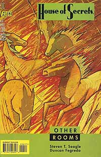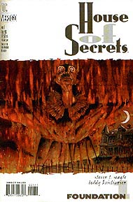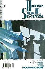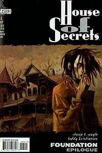 Link zur Ausgabe #3, #4, #5, #6, #7 House of Secrets #1, erschienen im Oktober 1996 bei Vertigo (DC) Autor: Steven T. Seagle, Zeichner: Teddy Kristiansen, Farben: Bjarne Hansen, Farbseperation: Heroic Age, Letterer: Todd Klein, Editor: Shelly Roeberg Eine männliche Gestalt wird durch unbekannte Kräfte in ein Gebäude gezerrt. Eine junge Frau trampt nach Seattle. Dem Mann, der sie mitgenommen hat, erzählt sie offen davon, daß sie vor ihrem Vater auf der Flucht ist, der sich mehrmals an ihr vergangen hat. Die Gestalt wird durch die Räume des Hauses weiter in einen großen Saal getragen. All ihr Flehen und Bettel bleibt scheinbar ungehört. Nun steht sie vor dem Gericht der Geheimnisse. Rain ist in der Stadt des Regens und der alternativen Rockmusik angekommen und sucht die erstbeste Konzertveranstaltung auf. Beim Auftritt der Band "Nightmare of Reason" lernt sie Traci kennen, die ein echter Fan der Band ist und die ein Faible für den Sänger der Band hat. Nachdem die Band zu Ende gespielt hat, fragt Traci Rain, ob sie noch Lust hat, mit der Band rumzuhängen. Rain lehnt dieses Angebot dankend ab. Da Traci, obwohl sie mit Ben, dem Bassisten der Band, befreundet ist, es nicht schafft, an Erik heranzukommen, eilt sie Rain nach, um sie zu fragen, ob sie Lust hätte, bei ihr zu wohnen. Traci lebt in einem alten großen Haus, von dem angenommen wird, daß es in ihm spukt. Rain nimmt das Angebot dankend an und ist über das gut eingerichtete Gebäude sehr verwundert. Nach einer unruhigen Nacht, in deren Verlauf es Rain auf die Terrasse zieht, unterhält sie sich mit Traci. Sie erzählt von sich und ihrem Vater. Wie er sie und ihren Bruder für Kinderpornoproduktionen benutzt hat und wie sie noch nicht einmal den Sheriff um Hilfe bitten konnte, da dieser selbst Kunde bei ihrem Vater war. Traci erzählt auch von ihrem Vater, der seltsame Dinge von ihr verlangte, sich aber nicht an ihr vergriff. Tracis Mutter war eine junge Wilde, die nicht zum Mutterdasein geschaffen war. Sie hat ihre Familie verlassen, als Traci sechs Jahre alt war. Im Laufe des Tages, nach einem für Rain viel zu langen Spaziergang durch die Stadt, erreichen sie den Proberaum von "Nightmare of Reason" und diese stecken gerade in ihrer neuesten Krise. Sänger und Bassist streiten sich über die Qualität der Texte. Eric wird handgreiflich und verpaßt Ben einen Schlag in den Magen. Danach kündigt der Sänger seinen Job und geht. Nachdem sich Rain und Ben begrüßt haben, ist Eric aber schon wieder zurück. In der nächsten Nacht wandert Rain, angetrieben von seltsamen Geräuschen, durch das Haus, und sie sieht, wie eine ältere weibliche Person scheinbar von Geisterhand durch das Haus getragen wird. Rain versucht einzugreifen, muß aber zusehen, wie die Frau in einen Raum gezogen wird, dessen Tür sich danach sofort schließt. Rain nimmt allen Mut zusammen und betritt den Raum. Nun steht sie im Gerichtssaal. Und Rain wird nun zur Zeugin des Gerichts berufen. Dem Gericht der Geheimnisse stehen folgende Personen vor: Digol, der die Worte des Rechts auf das erste Papier der Erde schreiben wollte und dabei wahnsinnig wurde, Nian, die gebrandmarkt ist, da sie mehr sein wollte als nur der Besitz ihres feudalen Gebieters, Ruby, die geblendet wurde und in Alabama all ihrer zivilen Rechte beraubte wurde, Clius, der zu Zeiten des Römischen Imperiums mit dem Zusammentragen von Tugenden beschäftigt war, Pflautz, der sich für den verkümmerten Geist von Preußen geopfert hat. Dann ist da noch die seltsame Erscheinung namens Plyck. Sie alle sind Gefangene des Haus der Geheimnisse. Die Anklage wird verlesen. Patricia Wexner wird des Geheimnisses des Mordes beschuldigt. Patricia hat viele Jahre für die Pflege ihrer Schwester geopfert. Eines Tages war sie es leid. Sie nahm ihr das Leben und ließ es wie ein Unfall aussehen. Pflautz ist der Ankläger und verlangt eine Bestrafung, die über das Leben weit hinaus geht. Ruby versucht als Verteidigerin ein gutes Wort für die mit der Schande des Mordes lebende Frau einzulegen. Rain wird darum gebeten, das Urteil zu verlesen. Es lautet: "unendliches Leben". Danach wird Rain darum gebeten, das Urteil zu bestätigen. Doch sie schreckt davor zurück. Sie will in diesen unheimlichen Reigen nicht hineingezogen werden. Irgendwie ist aber das, was sie sagt, genug für das Gericht. Die Verurteilte wird daraufhin in den Keller gebracht. Rain folgt ihr und schaut zu, wie Patricia Wexner in einem hellen Licht verschwindet. Die Zeichnungen sind einfach, aber eindringlich. Die Worte und Dialoge passen sich der Handlung immer an. Die Mischung macht es halt. Die Personen in der Realität wirken sehr lebendig und sobald das Gericht im Mittelpunkt steht, verwandelt sich alles in eine düstere Gruselgeschichte voller Abgründe. Diese Serie weiß einen anspruchsvollen Comicfan zu begeistern. House of Secrets #3, erschienen im Dezember 1996 bei Vertigo (DC) Autor: Steven T. Seagle, Zeichner: Teddy Kristiansen, Farben: Bjarne Hansen, Farbseperation: Heroic Age, Letterer: Todd Klein, Editor: Shelly Roeberg Rain stellt das Gericht der Geheimnisse zur Rede. Sie bekommt aber kaum Antworten. Sie weiß nur, daß sie die Verbindung zwischen dem geisterhaften Gericht und den sterblichen Angeklagten darstellt. Ansonsten gibt es in Rains Leben weiter Schwierigkeiten mit ihrer Mitbewohnerin Traci. Traci wurde nach einer Nacht in einem Club vergewaltigt. Doch da ihr das nicht zum ersten Mal passiert ist, versucht sie darum keinen großen Wirbel zu machen. Die Band hat ihre eigenen Probleme, doch das ist ja nichts Neues. In der Nacht kommt es zu einer weiteren Gerichtsverhandlung und Rain ist nicht ganz bei der Sache. Am Tage versucht Rain Ben bei seiner Beziehung zu einer Verkäuferin in einem Musikerladen behilflich zu sein. Ben wollte aber nicht, daß Rain der Verkäuferin erzählt, daß er sich in diese verliebt hat. Rain und Eric vergnügen sich und Traci unterbricht die Szenerie. Da Traci wieder sehr verwirrt zu sein sc
