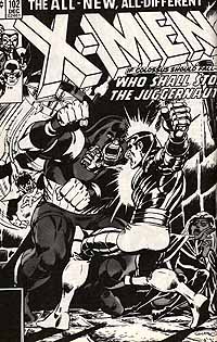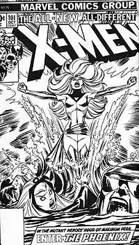 X-Men #100, X-Men #101, erschienen im Oktober 1976 bei Marvel Comics Autor: Chris Claremont, Zeichner: Dave Cockrum, Tusche: Frank Chiaramonte, Farben: Bonnie Wilford., Letterer: John Costanza, Editor: Archie Goodwin Ein Shuttle stürzt auf die Erde hinab. Dabei durchfliegt das Objekt einen der gewaltigsten Sonnenstürme, den es jemals gab. Die Hoffnung der sich an Bord befindenden X-Men ruhen auf Marvel Girl. Doch wird selbst sie mit ihren starken Kräften die Strahlungen der Sonne abwehren können? Als das Fluggefährt auf die Erde kracht, scheint es führerlos ins Wasser zu fallen. Dort kommen langsam die Überlebenden an die Oberfläche, um ein überraschendes Auftauchen zu erleben. Phönix schwebt über ihnen. Dies doch nur kurz, um dann zu Boden zu gehen. Marvel Girl liegt bewußtlos in den Armen von Scott Summers. Logan will Jean mit einem Strauß Blumen überraschen. So ganz kann er, der Einzelgänger, zwar selbst nicht glauben, was er da tut, da er sich selbst nicht so richtig über seine Gefühle zu Jean im Klaren ist. Er hätte aber wissen sollen, daß auch all seine Teamkameraden am Bett der Kranken Wache halten. Dann kommt die Nachricht, auf die sie gewartet haben. Dr. Corbeau und Dr. McKay geben bekannt, daß Jean Gray wieder gesund werden wird. Sie braucht nur Ruhe. Scott dankt im Stillen Gott für diese Nachricht. Professor Xavier, der immer noch, wenn er seine Kräfte benutzten will, von den seltsamen Träumen geplagt wird, schickt kurzerhand alle X-Men in Urlaub. Nur er und Scott werden sich nun um Jean kümmern. Banshee weiß auch schon, wohin die Reise geht. Er hat einen Brief aus seiner Heimat bekommen und dieser statten er und seine Freunde nun einen Besuch ab. In Irland kommen sie dann auf holprigen Straßen nach Cassady Keep, einer großen, aus Stein gehauenen Festung, die schon den Attacken der Nordmänner in alter Zeit standhielt. Nachdem alle es sich in ihren Zimmern gemütlich gemacht haben (was nur Ororo schwer fällt, da es hier weit und breit keinen grünen Flecken zu geben scheint, sondern nur kalten Stein), geht es zum Abendessen. Bein Weg zum Essen fallen aber alle durch eine Falltür vor die Füße von Black Tom Cassady und dem Juggernaut. Diese beiden sind mit Sean verwandt und haben nun ein Ziel vor Augen: sie wollen die X-Men umbringen. Wir erleben die Geburt von Phönix und uns wird klar, daß außer Scott auch noch Logan und Prof. X viel mehr als nur Freundschaft für Jean Gray empfinden. Danach begeben wir uns mit den Helden auf eine Reise nach Irland, wo diese in die Fänge einer Verwandtenintrige geraten. Damit treffen wir auch nicht zum letzten Mal auf Black Tom und dem Juggernaut. X-Men #102, erschienen im Dezember 1976 bei Marvel Comics Autor: Chris Claremont, Zeichner: Dave Cockrum, Tusche: Sam Grainger, Farben: Bonnie Wilford., Letterer: John Costanza, Editor: Archie Goodwin Xaviers X-Men müssen sich der Kraft des Juggernauts schnell geschlagen gehen. Chain Marko, ein Fleischberg mit riesigen Fäusten, schaltet einen nach dem anderen aus. Nur Nightcrawler schafft es immer wieder, geschickt den Schlägen des Giganten auszuweichen. Die miteinander verwandten Sean und Black Tom Cassady, die jeweils gegen die Kräfte des anderen immun sind, schlagen derweil auch aufeinander ein. Ororo erleidet derweil Todesängste. Hilflos muß sie mit ansehen, wie ihre Freunde ausgeschaltet werden. Doch die Angst läßt sie nicht los. Sie blickt mit Schrecken auf ihr Leben zurück. Ororo ist die Tochter des Fotojournalisten David Munroe und einer afrikanischen Prinzessin mit Namen N`Dare. Diese ziehen von New York nach Kairo und landen dort inmitten eines Krieges. Französische Bomber werfen Bomben ab. Einer der Bomber wird getroffen und fällt in die Tiefe. Er fällt auf ein Gebäude und läßt dieses mit der heftigen Wucht des Aufpralls zerbersten. Unter den Trümmern ist auch Ororo und ihre Familie. Sie überlebt als einzige. Die Waise irrt durch die Straßen der Metropole. Ein Mann namens Achmed El Gibars nimmt sich ihrer an und bildet sie, wie so viele andere Straßenkinder, zur Bettlerin und Diebin aus. Sie wird seine beste Schülerin. Danach verschlägt es sie in die Tiefe des schwarzen Kontinents. In Zentralafrika erlangt sie unter den Eingeborenen den Status einer Göttin. Eines Tages taucht ein im Rollstuhl sitzender Mann auf. Ororos Ängste erreichen trotz der Hürde eines Meeres Prof. Charles Xavier. Er weiß nun, in welcher Gefahr seine X-Men stecken. Schnell ruft er nach Scott Summers und dieser verläßt nur ungern das Krankenzimmer, in dem seine geliebte Jean liegt. Jean bleibt aber nicht allein. Ihre New Yorker Zimmergenossin Misty Knight ist auch anwesend. Ihr erzählt sie von ihrer Wiedergeburt. Xavier ist unterdessen sehr sauer auf Scott. Dieser weigert sich, seinen Kameraden hinterher zu reisen. Er würde doch zu spät kommen, sagt er und will auf keinen Fall den Menschen allein lassen, der ihm wichtiger ist als alles andere auf dieser Welt. Im Zorn erreicht Xavier eine weitere Vision einer außerirdischen Person. In der Burgfeste geht der Kampf weiter und nun fällt auch Nightcrawler. Da, wo er liegt, erscheinen plötzlich kleine Gestalten mit spitzen Ohren und diese ziehen Kurt Wagner in Sicherheit. Nun schlägt Black Tom Sean Cassady nieder und er erzählt, daß er und der Juggernaut nicht nur aus eigenem Antrieb gegen die X-Men angetreten sind. Sie wurden auch noch von einem Dritten dafür bezahlt. Der Kampf ist recht dramatisch, doch zu früh läßt sich die Hilflosigkeit,