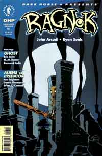 vergessen hat. Kurzweilig, auch nicht gerade originell, dafür aber ganz nett in Szene gesetzt. Zur Zeit fehlt es aber an guten und am besten an abgeschlossenen Geschichten, so daß von keiner der hier gezeigten Geschichten ein lang anhaltender Eindruck haften bleibt. Dark Horse Presents (jr.) Annual 99, erschienen bei Dark Horse Comics In dieser Sonderausgabe werden Geschichten aus der Jugend zahlreicher Dark Horse-Helden erzählt. "Xena Warrior Princess - The Worm" von John Wagner (Autor), Joyce Chin (Zeichnerin), Walden Wong (Tusche), John Workman (Letterer) Xena, eine junge Frau, die als Kämpferin durch die Lande zieht, trinkt beinahe Wasser, das einen einschläfert und das Gedächtnis auslöscht. Doch wird sie von einem jungen Hirten daran gehindert. Ihr Pferd trinkt aber von dem Wasser und fällt sofort in einen tiefen Schlaf. Der Hirte, der von Xena abgelenkt wurde, muß nun zusehen, wie ein Drache vorbeikommt, der sich eine Ziege schnappt. Dies erzürnt den Besitzer der Ziege und er schimpft mit dem jungen Schäfer. Xena geht mit dem Besitzer einen Handel ein. Der Landwirt kümmert sich um das schlafende Pferd, während Xena das Drachenproblem löst. Und Xena löst das Drachenproblem mit der Hilfe des verzauberten Wassers. Simple Story, nett gezeichnet "Hellboy - Pancakes" von Mike Mignola (Story & Art), Pat Brosseau (Letterer) Klein Hellboy wird dazu gezwungen, mal einen Pancake zu essen. Erst wehrt er sich, dann probiert er und es schmeckt ihm. Nun weiß die Hölle, daß sie Hellboy wirklich verloren hat. Kurz und lustig. "Usagi Yojimbo - A Funny Thing Happened on the Way to the Tournament" von Stan Sakai Klein Usagi ist mit seinem Lehrmeister auf den Weg zu einem Wettkampf. Usagi soll dort nicht selber antreten, sondern beim Zugucken etwas lernen. Er bekommt aber Streit mit einem jungen Mädchen und dieser endet in einem kurzen Zweikampf, aus dem nicht Usagi, sondern das Mädchen Tomoe als Siegerin hervor geht. Viele Jahre später werden sich diese beiden wieder treffen. Ami-Manga mit einen Hauch Disney gemischt. "Ghost - My Sister's Keeper" von Mike Kennedy (Autor), Christian Zanier (Zeichner), Marvin Mariano (Art-Assistent), Steve Haynie (Letterer) Bevor aus einem jungen Mädchen eine Heldin wird, kümmert sich Elisa um ihre Schwester Margo, die ganz im Gegensatz zu ihrer Schwester abenteuerlustig und aufmüpfig ist. Auf einen solchen Zeichner wie Christian Zanier sollte man achten. Die Story hat man irgendwie aber schon tausendmal gelesen. "Groo - Groo for Sale" von Sergio Aragoés (Story & Art), Mark Evanier (Dialoge), Stan Sakai (Letterer) Klein Groo, schon als Kind dafür bekannt, daß er für Zerstörung und Verzweiflung verantwortlich ist, wird von seiner Großmutter für wenig Geld an die verschiedensten Leute verkauft, die sich aber schnell von diesem für viel mehr Geld wieder freikaufen. Selbst ein König, der erst von den Fähigkeiten des Knaben entzückt ist, so daß er Groo zu seinem Erben ernennt, erkennt zu spät, was Groo in Wirklichkeit für einer ist. Dafür landet dann Groos Großmutter im königlichen Kerker. Groo stiftet eben immer Chaos, egal ob er jung oder alt ist. "Concrete - Orange Grow" von Paul Chadwick (Art und Story), Letterer (Bill Spicer) Ron ist ein fünfzehnjähriger Junge, der mit drei befreundeten Jugendlichen auszieht, um eine Höhle zu erkunden. In den Tiefen der Höhle verschwindet einer der Jugendlichen aber aus unerklärlichen Gründen spurlos. Später wird aus Ron ein Wesen aus Stein. Nett erzählt und wunderbar gezeichnet. "Luke Skywalker - Walkabout" von Phil Norwood (Zeichner & Art), Shannon Denton (Tusche), Amador Cisneros (Letterer) Luke und ein Freund werden von einem mächtigen Sandsturm und einer riesigen Bestie überrascht. Glücklicherweise taucht Ben Kenobi auf, um den Jungs zu helfen und diese sicher nach Hause zu bringen. Onkel Lars verscheucht den alten Ben aber schnell wieder von seiner Farm. Öhh, auch ganz nett, wenn auch nicht gerade sehr einfallsreich. "The Mask - Angry Young Mask" von Rick Geary Ein Junge, der sich wünscht, so manche Superkraft zu besitzen, findet eine alte Maske. Er setzt sie auf und seine Wünsche werden wahr. Nur werden ihm nicht alle Wünsche auf einmal erfüllt. Am Ende ist er verärgert und wirft sie wieder weg. Dort findet sie dann sein zwei Jahre alter Bruder. Mit "The Mask" konnte ich noch nie was anfangen. Sorry. Dark Horse Presents #147, erschienen im Oktober 1999 bei Dark Horse Comics "Ragnok" Part 1, Autor: John Arcudi, Zeichner: Ryan Sook, Letterer: Mike Heisler Ein seltsamer Kerl, der gerade beim Baden ist, erhält einen Anruf. Der Anrufer gibt nur bekannt, daß er nicht tot ist. Der Barkeeper Jeff erzählt einem Kunden von seinem unglücklichen Privatleben. Dann betritt der Kerl aus dem Bad die Bar und erzählt Jeff, was passiert ist. Jeff will dem Neuankömmling nicht glauben, doch plötzlich steht eine seltsame Gestalt im Eingangsbereich der Bar. Seltsame Wesen in einer Großstadt scheinen diese Story auszufüllen und ich habe keine Ahnung, wie die Sache weitergeht. Die Zeichnungen sind schön düster. "Ghost - The Woes of Sinful Bachelors" von Eric Luke (Skript), H. M. Baker (Zeichner), Bernard Kolle (Tusche), Steve Haynie (Letterer) Ghost muß, nachdem sich die beiden Gangster bei ihrem unfreiwilligen Weg durch den Sumpf fast gegenseitig umbringen, wieder einschreiten und kommt am Ende zu einer wirklich seltsamen Lösung. Die beiden Obergangster scheinen am Ende für immer voneinander abhängig zu sein. Da ich mich mit Ghost kaum auskenne, frage ich mich, wie sie das geschafft hat, was sie am Ende mit den Gangstern macht. Irgendwie ist mir das Ende daher etwas zu unglaubwürdig. "Aliens vs. Predator - The Web" Part 2, von Ian Edginton (Text), Derek Thompson & Brian O' Connell (Art), Clem Robbins (Letterer) Robert Sheldon hat eine Falle gestellt. Dieser fallen nicht nur seine Haßgegnern, die Aliens und die Predators, zum Opfer, sondern auch eine Schiffscrew, die diesen Planet