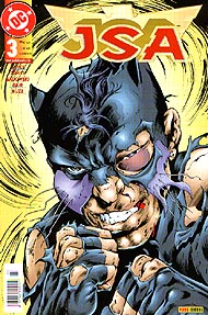 JSA #1, erschienen im Oktober 2001 bei Panini Autoren: David Goyer & Geoff John, Zeichner: Marcos Martin & Stephen Sadowski Die JSA erlebt, nachdem sie zur Wiedervereinigung gezwungen worden ist, nun ihren ersten offiziellen Auftritt und stellt dabei auch glatt ihr JSA-Museum der Öffentlichkeit vor. Doch auch an einem solchen Tag kann sich die Gruppe, die aus mindestens drei Generationen von Superhelden besteht, keine Pause gönnen, da plötzlich Black Adam, das schwarze Schaf der Marvel Familie, auftaucht und alles zu Brei haut, was nicht niet- und nagelfest ist. Es braucht bei einem solchen Gegner auch schon einen außergewöhnlichen Plan, der einige Mitglieder sogar bis in das alte Ägypten führt. Richtig dramatisch wird es aber erst in der zweiten Geschichte, die dann auch wieder nach einem kurzen Gastauftritt von Zeichner Marcos Martin von JSA-Stammzeichner Stephan Sadowski in gewohnt guten Bildern festgehalten worden ist. Die JSA muß nach Milwaukee, denn dort gibt es ein seltsames Phänomen zu erleben. Alle Schatten, egal ob sie zu Gegenständen, Pflanzen, Tieren oder Menschen gehören, sind dort wie vom Erdboden verschluckt. Es fehlt jede Art von Finsternis. Sentinal befürchtet nun das Schlimmste, da diese Sache etwas mit seinem Sohn Todd zu tun haben könnte. Obsidan scheint irgendwie außer Kontrolle geraten zu sein. Und als die JSA in Milwaukee ankommt, werden sie von finsteren Schattenwesen angegriffen und einer nach dem anderen fällt unter die Kontrolle der unbekannten Schattenmacht. Den Anfang der neuen JSA-Reihe habe ich ja sehr genossen (siehe JSA in der US-Rubrik). Nun scheinen die für Leser wie mich wichtigen Auseinandersetzungen zwischen den einzelnen und sehr unterschiedlichen Teammitgliedern total zu fehlen, um einer Konflikthandlung, in der sich die Gruppe vereint einem Gegner stellen muß, Platz zu machen. Nur als Dr. Fate versucht, mit dem neuen Hawk-Girl ein persönliches Gespräch zu führen, ist ein kurzer Moment von menschlicher Atmosphäre zu spüren. Der Rest, obwohl es auch dort um dem Sohn eines der Mitglieder geht, versinkt im Kampflärm. Dies ist eigentlich schade JSA #2, erschienen im Dezember 2001 bei Panini Autoren: David Goyer & Geoff John, Zeichner: Stephen Sadowski Die Mitglieder der JSA sind den von Obsidan gelenkten Schattenmächten nicht gewachsen. Bloß Black Canary, die von dem plötzlich auftauchenden Doctor Midnight Hilfe bekommen hat, ist noch nicht zum Opfer ihrer Alpträume geworden. Zusammen mit ihrem Retter, der über nützliche Waffen verfügt, die ihnen im Kampf gegen die Schattenwesen helfen, versucht sie, ihre Freunde zu befreien, um gemeinsam Obsidan zu schlagen. Dieser scheint aber immer mächtiger zu werden. So kommt es zu einem Duell, bei dem Obsidans Vater Sentinal vielleicht all seine Kraft aufbringen muß, damit die Welt nicht zu einem Ort wird, an dem jeglicher möglicher Alptraum zur Realität werden kann. Diese Geschichten, die drei US-Ausgaben füllen, haben einen Nachteil. Sie fangen meistens spannend an, lassen aber beim langgezogenen Endkampf immer etwas nach. Außerdem muß es auch nicht immer gleich ums Ende der Welt gehen. Dies wird auf Dauer langweilig und bietet immer viel zu wenig Platz, um auf all die verschiedenen Charaktere eines Superheldenteams richtig einzugehen zu können. Und interessante Charaktere gibt es in dieser Gruppe genug. JSA #3, erschienen im Februar 2002 bei Panini Autoren: David Goyer & Geoff John, Zeichner: Stephen Sadowski, Buzz Ted Grant ist alleine im Hauptquartier der JSA zurückgeblieben, da er aus gesundheitlichen Gründen eine Pause einlegen muß. Doch aus der erhofften Erholung wird nichts, da plötzlich die von Johnny Sorrow angeführte Injustice Society auftaucht. So muß sich Wildcat ganz auf seine Einzelkämpferqualitäten verlassen und er schafft es sogar, den Gegnern einen guten Kampf zu liefern. In der zweiten Geschichte muß sich das Team Verstärkung hohlen, da es sich mit zwei großen Problemen beschäftigen muß. Ein fieser Superterrorist namens Kobra hat die Macht über einen Meta-Menschen gewonnen, mit dessen Hilfe er nun jedes elektronische und magnetische System kontrollieren kann. Um seine Macht zu demonstrieren, läßt er ein Flugzeug abstürzen, an dessen Bord sich zufällig auch die Mutter des Atom Smasher befindet. Außerdem steht plötzlich das Star-Spangled Kid einer anderen Zeit vor dem Team und schnell ist für Hourman klar, daß dahinter Extant steckt, der einst in der "Zero Hour" das DC-Universum für immer verändert hatte. So macht sich das eine Team auf, um Extant aufzuhalten, während die anderen mit der Hilfe von Starman, Dr. Mid-Nite und Hippolyta dem Hauptquartier von Kobra einen Besuch abstatten. Wirklich gute und niemals langweilende Superheldenkost bietet diese Ausgabe. Zwar werden die neuen Abenteuer mit den denkbar einfachsten Methoden gestartet, aber Spaß machen diese Geschichten auf jeden Fall. Damit gefallen mir die Abenteuer der JSA derzeit um einiges besser als die der JLA und die der Rächer. JSA #4, erschienen im April 2002 bei Panini Autoren: David Goyer & Geoff John, Zeichner: Stephen Sadowski, Buzz Während der eine Teil der JSA sich mit Kobra anlegt und dabei achtgeben muß, daß einer der ihren nicht zum rächenden Mörder wird, sieht sich der Rest der Truppe einem übermächtigen Gegner gegenüber, dem es sogar gelungen ist, den "Neuen Gott" Metron zu bestehlen. Nun hat Extant einen Möbius Stuhl zu seiner freien Verfügung und damit schon fast sein Ziel erreicht. Indem er nun jede Stelle im Raum-Zeit-Gefüge erreichen kann, kann er das Universum neu erschaffen und die JSA scheint daran nichts ändern zu können. Zu mächtig scheint der Feind zu sein. Während im ersten Teil dieser Ausgabe die Superhelden fast zu einfach mit ihrem Gegner fertig werden, treffen sie danach auf einen Feind, dem selbst die erfahrensten Helden nichts entgegenzusetzen haben, anscheinend werden bis zum Ende dieses Kampfes sogar einige Helden ihr Leben 
