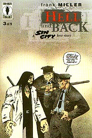Sin City - Hell and Back #1 von 9, erschienen im Juli 1999 bei Dark Horse (Maverick) Art & Story: Frank Miller, Redakteur: Diana Schutz Eine Frau steht vor einem Abgrund. Ein Künstler denkt über den Wert der Kunst und über die Oberflächlichkeit seiner Kunden nach. Dann bringt eine aus der Höhe fallende Jacke die Aufmerksamkeit des Mannes in das Hier und Jetzt zurück. Im Jetzt sitzt er am Steuer seines Wagens, den er versucht, unter Kontrolle zu halten. Er geht zu der Jacke und blickt sich um. Dann sieht er die Frau. Er spricht sie an und sie blickt zu ihm und springt. Er springt hinterher und rettet sie. Er bringt die leblose Frau zu seinem Wagen. Er weiß nicht, daß er beobachtet wird. Ein Krankenwagen steht bereit, ihnen zu folgen. Zwei Männer, mit Spritze und Pistole bewaffnet, beraten, was sie nun tun sollen. Von seiner Vermieterin wird die Frau wieder ins Reich der Lebenden zurückgeholt. Wallace trainiert sich derweil im Boxen und Treten. Dann kommt sie zu ihm und bedankt sich. Wallace bietet ihr an, etwas von seinen Klamotten zu nehmen. Bein Durchwühlen seiner Klamotten entdeckt sie seine Ehrenauszeichnung. Dann wollen sie noch einen trinken gehen. Vorher aber entdeckt sie seine Bilder. Sie reden und gehen in eine Bar. Er erfährt, daß Esther eigentlich eine Schauspielerin ist. Er erzählt ihr von seinen Kriegserlebnissen (dem Leser aber nicht). Zurück auf der Straße, zielt ein Schütze und drückt ab. So, da haben wir sie, die neueste Geschichte aus der Stadt der Sünde. Nun ja, wieder scheint der Plot zu heißen: "Frau mit Problemen wird vom starken Außenseiter gerettet, der dann selber Probleme kriegen wird". Auffallend ist aber, daß die Schwarzweißkunst nicht mehr so ausgereift ist wie in früheren Geschichten. Dafür gibt es dann doch einen Abzug in der B-Note. Sin City - Hell and Back #2 von 9, erschienen im August 1999 bei Dark Horse (Maverick) Art & Story: Frank Miller, Redakteur: Diana Schutz Esther wird vor Wallaces Augen entführt. Er selbst wurde durch Betäubungsmittel gelähmt und kann so nur mitansehen, wie Esther von einem bulligen Typen und einem Doktor weggeschafft wird. Da er kaum bei Sinnen ist, wird er von zwei Polizisten, die ihn finden und glauben, daß er zu viele Drogen genommen hat, in eine Ausnüchterungszelle gesteckt. Am nächsten Tag macht sich Wallace auf die Suche nach Hinweisen, er findet aber nur einen Schuh, den Esther getragen hatte. Esther selbst wird darauf vorbereitet, daß sie bald nur noch das Leben so lebt und sich daran erinnert, was andere für sie geplant haben. Ihr Körper bleibt bis auf ein paar Korrekturen im Gesicht aber so wie er ist. Wallace wird bei seinen Nachforschungen beobachtet und der Beobachter gibt dies an seine Auftraggeber weiter. Richtig viel Inhalt hat diese Ausgabe nicht, aber Sin City war ja immer schon mehr was für die Augen. Trotzdem bin ich gespannt wie es weitergeht. Sucht unser Held jetzt wie der Prinz in einem bekannten Märchen nach dem passenden Fuß für den Schuh, den er gefunden hat, der dann eigentlich ja sogar ihm selbst gehört, da er diesen Schuh ja der Prinzessin geliehen hat? Sin City - Hell and Back #3 von 9, erschienen im September 1999 bei Dark Horse (Maverick) Art & Story: Frank Miller, Redakteur: Diana Schutz Beim Polizeichef bittet Wallace um Hilfe bei der Suche nach Esther. Dieser zeigt sich zwar hilfsbereit, doch da ihm Wallace nur sehr wenige Hinweise geben kann, glaubt er nicht, daß er viel ausrichten kann. Dann zeichnet ihm Wallace ein Bild von Esther. Dies beeindruckt den Polizisten. Als Wallace gegangen ist, zerknüllt der Polizeichef das Bild und hetzt Wallace seine Untergebenen auf den Hals. Diesmal ist Wallace aber nicht durch Drogen beeinflußt und so sind Manson und die anderen Officer kein Problem für ihm. Als Esther erneut erwacht, wird sie beobachtet. Auf die Frage, wo sie ist, bekommt sie folgende Antworten: "Du bist nirgendwo. Du bist nichts. Du bist niemand. Du existierst nicht." Der Polizeichef und der Colonel unterhalten sich. Von nun an wird sich der Colonel um Wallace kümmern. Von seiner Vermieterin erhält Wallace einen wichtigen Hinweis. Sie hat eine Visitenkarte von Esther gefunden. Wallace macht sich auf den Weg. Er findet zwar eine Frau, die aber genau wie er auch gerne wissen möchte, was mit Esther passiert ist. Die Story entwickelt sich weiter und wir stellen fest, daß sich Wallace viele gefährliche Feinde gemacht hat. Außerdem finde ich so langsam die Zeichnungen von Miller wieder einfach gut. Er ist halt einer der Meister seines Fachs. Sin City - Hell and Back #4 von 9, erschienen im Oktober 1999 bei Dark Horse (Maverick) Art & Story: Frank Miller, Redakteur: Diana Schutz Wallace versucht mehr über Esther zu erfahren, findet aber in ihrer Wohnung nur die total verängstigte Mitbewohnerin der Gesuchten vor, die von Wallace kaum zu beruhigen ist. Dalia kann ihm, als sie sich etwas beruhigt hat, auch kaum mehr über Esther erzählen, außer daß Esther schon seit längerem von jemanden verfolgt worden ist. Danach versucht Dalia etwas menschliche Wärme und Zuneigung von Wallace zu ergattern, doch sie wird dabei durch einen bulligen Chauffeur, der Wallace verfolgt hat, gestört, da dieser plötzlich in die Wohnung stürzt und Wallace umbringen will. Wallace kann sich aber gut gegen den bulligen Typen erwehren und am Ende muß er den Chauffeur natürlich aus reiner Notwehr aus dem Fenster werfen. In dieser Ausgabe gibt es kaum Handlung, ein paar nette Bilder, wenn auch der nackte Busen der Frau hier etwas zu oft gezeigt wird, was der Handlung nicht gerade besonders weiterhilft, dafür aber Frank Miller wohl als Zeichner und Autor Freude zu machen scheint, da er damit ganz klar stellt, daß er Comics für Erwachsene macht. Ob er damit seinem Feldzug gegen Zensur wirklich hilft, weiß ich nicht, da ein solch oberflächlicher Gebrauch von Sex seiner eigentlich nicht würdig ist. Provokant zu sein und trotzdem einem gewissen Anspruch gerecht zu wer