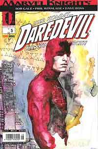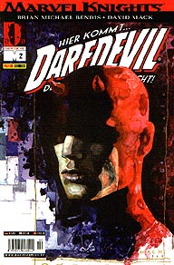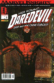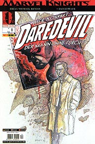 Link zur Ausgabe #2, #3, #4, #5 Daredevil #1, erschienen im Februar 2002 bei Panini (Marvel Knights) Autor: Brian Michael Bandis, Zeichner: David Mack (mit Unterstützung von Mark Morales), Übersetzung: Lisa Pancaldi Reporter Ben Urich versucht das Geheimnis eines Kindes zu entschlüsseln, das sich nach einem scheinbar traumatischen Ereignis in eine Fantasiewelt begeben hat. Der Junge ist der Sohn eines unbedeutenden Superschurken. Sein Vater, der Leap Frog, ist aber scheinbar spurlos verschwunden und so muß Urich versuchen herauszufinden, was es mit den Fantasiekämpfen auf sich hat, die sein Sohn beschreibt. In diesen Kämpfen schlägt sich Daredevil mit einem gewissen Fury. Eine Daredevil-Geschichte fast ohne Daredevil, dafür aber mit unserem Lieblingsreporter des Daily Bugle Ben Urich. Und da die Action in dieser Geschichte auch ziemlich kurz kommt, können wir uns auf die hervorragenden Dialoge von Bandis und die ausgefallenen und einfach unglaublich ausgefeilten Bildwelten von David Mack konzentrieren. So zeigen die Daredevil-Verantwortlichen, was ein Superheldencomic alles sein kann. Da scheint vieles, was wir gerade an Superheldenkost konsumiert haben, reine Zeitverschwendung gewesen zu sein. Doch würde wohl jeder so zeichnen wie David Mack, dann würde auch seine Kunst wohl irgendwann sehr langweilig werden. Wenn ich darüber nachdenke, dann glaube ich diesen Worten aber nicht so richtig. Ich versuche mich nur gerade dafür zu entschuldigen, daß ich soviel Zeit mit total simplen, wenn auch teils unterhaltsamen Bildgeschichten vergeude. Na ja, in letzter Zeit lese ich auch wieder viel in Büchern und mein Gott, es gibt Schlimmeres. "Gute Zeiten, schlechte Zeiten", "TV-Total", "Fomel 1 - Rennen" gucken oder so was. Auf jeden Fall freue ich mich jetzt schon gewaltig auf die nächste Ausgabe und ich versuche in meinen grafischen Arbeiten etwas von der Kunst des David Mack einfließen zu lassen. Grafiker und Gestalter können von diesem nämlich eine Menge lernen. Daredevil #2, erschienen im Mai 2002 bei Panini (Marvel Knights) Autor: Brian Michael Bandis, Zeichner: David Mack, Übersetzung: Lisa Pancaldi Ben Urich muß einen Schritt weiter gehen, um das Geheimnis zu lüften, das Timmy, den Sohn des Superschurken Leap Frog, umgibt. Dieser Junge ist in einem Schockzustand gefangen und er drückt sich und seinen inneren Kampf nur durch Zeichnungen aus, in denen es zwischen Daredevil und einer anderen Gestalt zu einem Kampf kommt. Ben ist so versessen darauf, hinter dieses Geheimnis zu kommen, daß er sogar seine Arbeit an einem sehr wichtigen Gerichtsprozeß vernachlässigt, was seinen Boß J. Jonah Jameson gar nicht gut finden wird. Doch der Reporter muß von Daredevil persönlich erfahren, was damals passiert ist. Doch auch dieser kann, als er ihm von seinem letzten Kampf gegen den Leap Frog erzählt, nicht alles aufklären. Es muß noch etwas anderes passieren. Hier wird nicht nur eine interessante kleine Geschichte erzählt, Bandis erklärt uns auch herausragend, wie die Figur des Reporters mit der des Helden verknüpft ist. Dabei honoriert er vollkommen die Arbeit, die Frank Miller an dieser Comicfigur geleistet hat. Doch vielmehr faszinieren mich wieder die herausragenden Comicseiten, die ein herausragender Ausnahmekünstler namens David Mack hier geschaffen hat. Es ist seine Kunst, die aus dem Komponieren und Verbinden verschiedener Stile besteht und mit der er sich meilenweit von der Dutzendware des Üblichen absetzt. Schade, daß ab der nächsten Ausgabe wieder andere Kreative am Werk sind. Eigentlich sollte jedes Comic so gut sein wie dieses. Doch dann gäbe es wohl auch keine Ausnahmekünstler mehr. Daredevil #3, erschienen im Juli 2002 bei Panini (Marvel Knights) Autor: Bob Gale, Zeichner: Phil Winslade & James Hodgkins, Übersetzung: Frank Borsch Matt Murdock erhält von einem sehr reichen Mann, der für seine Wohltätigkeit bekannt ist, das Angebot, Daredevil zu verklagen. Angeblich hätte Daredevil im Kampf gegen zwei Ninjas das Gewächshaus von Samuel Griggs total zerstört und wäre dann einfach wieder verschwunden. Griggs glaubt, daß man dem verantwortungslosen Handeln der kostümierten und maskierten Helden endlich Einhalt gebieten muß. Matt Murdock muß darüber nachdenken. Griggs hat bei seinen Ausführungen nicht gelogen. Er glaubt wirklich, daß Daredevil sein Gewächshaus zerstört hat, doch Matt weiß, daß Daredevil niemals dort war. Ist noch jemand anderes als Daredevil unterwegs? Außerdem wird ein alter Gegner von Daredevil aus dem Gefängnis entlassen. Der Jester ist wieder auf freien Füßen und auch er hat bald wieder einen großen Auftritt. Bob Gale, der Autor dieser Geschichte, die in der nächsten Ausgabe ihren Abschluß findet, ist eigentlich Drehbuchautor und er hat mit "Zurück in die Zukunft" einen echten Kinohit geschrieben. Hier entpuppt er sich als ein Autor, der mehr auf einfache Art seine Geschichte erzählt, die viel Aufmerksamkeit auf die Person des Matt Murdock verwendet und Daredevil nur am Rande auftauchen läßt. Dafür erhalten auch alle Personen um Matt Murdock herum wieder etwas mehr Aufmerksamkeit, außerdem wird eine neue Mitarbeiterin eingeführt.. Phil Winslades Arbeit finde ich, nachdem ich seine Zeichnungen in der "Spider-Man/Daredevil" Serie ja etwas zu simpel fand, hier wieder besser und sie erinnern mich auch sehr stark an die eines alten Meisters namens Gene Colan. Daredevil #4, erschienen im September 2002 bei Panini (Marvel Knights) Autor: Bob Gale, Zeichner: Phil Winslade & David Ross, Übersetzung: Frank Borsch Noch immer verlangt der Millionär Samuel Griggs von Daredevil eine Entschuldigung und er möchte auch etwas Geld als Schadensersatz haben, das er aber für einen guten Zweck spenden will. Und damit Griggs sein Recht bekommt, hat er die Anwälte Murdock und Nelson beauftragt. Nun bekam Daredevil zu seiner eigenen Überraschung von Jester, einem seiner alten Gegner, eine Gerichtsvorladung überreicht. So is